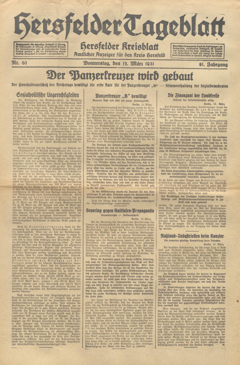 Hersfelder Tageblatt. 1913-1933