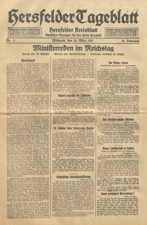 Hersfelder Tageblatt. 1913-1933