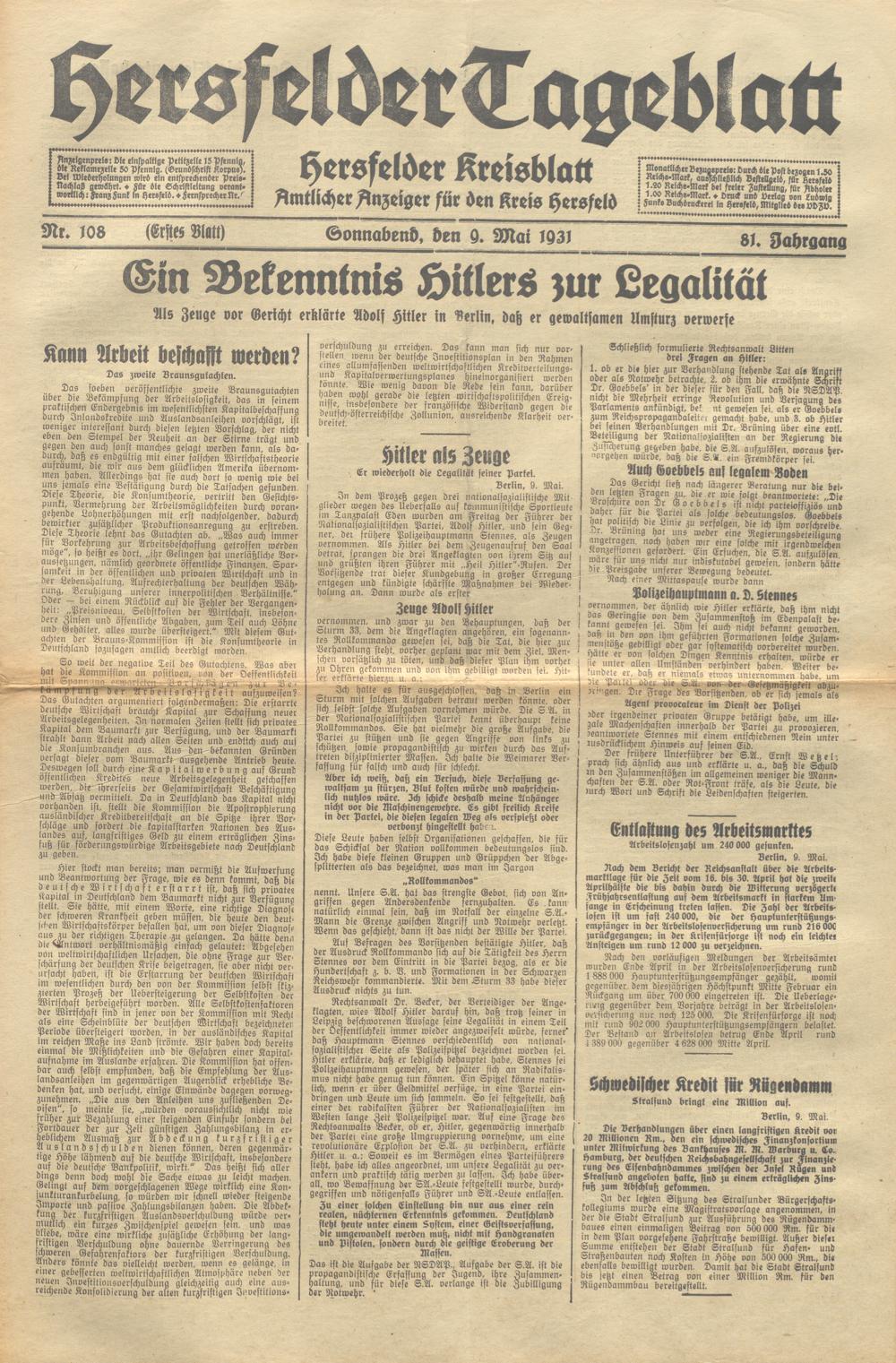 Hersfelder Tageblatt. 1913-1933