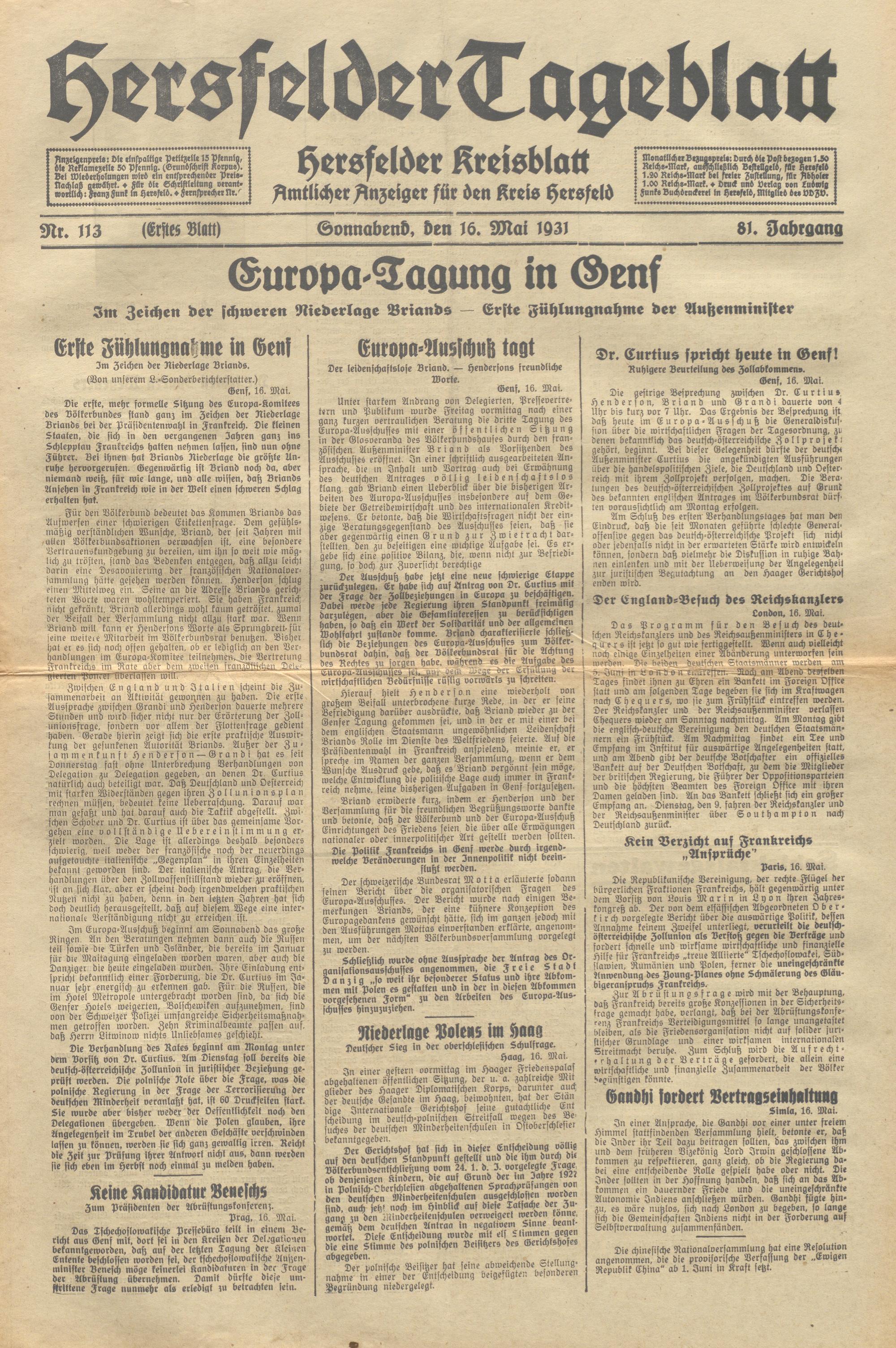 Hersfelder Tageblatt. 1913-1933