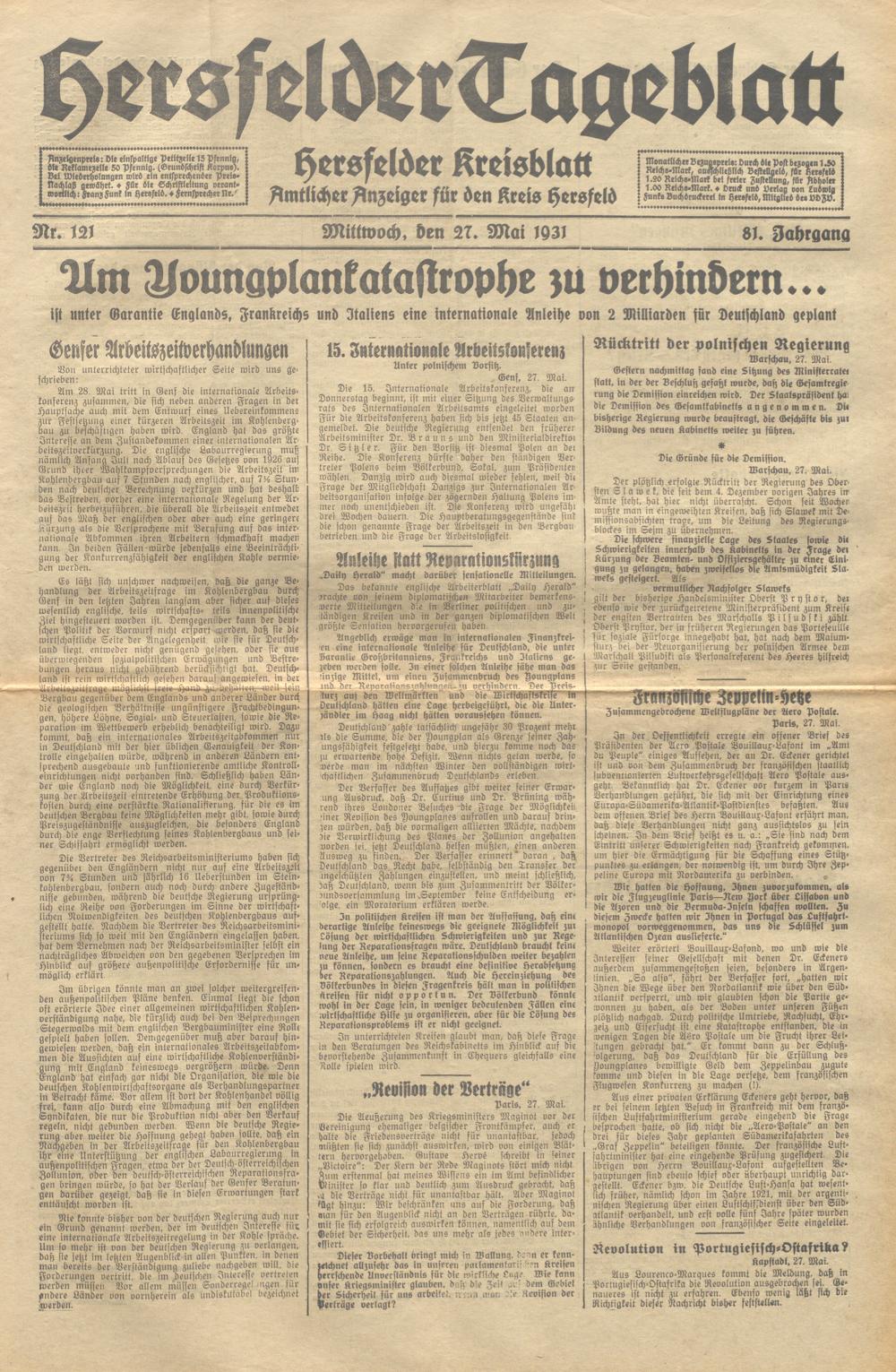 Hersfelder Tageblatt. 1913-1933