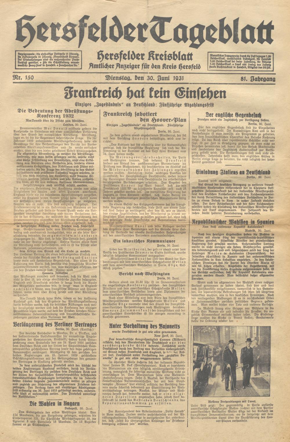 Hersfelder Tageblatt. 1913-1933
