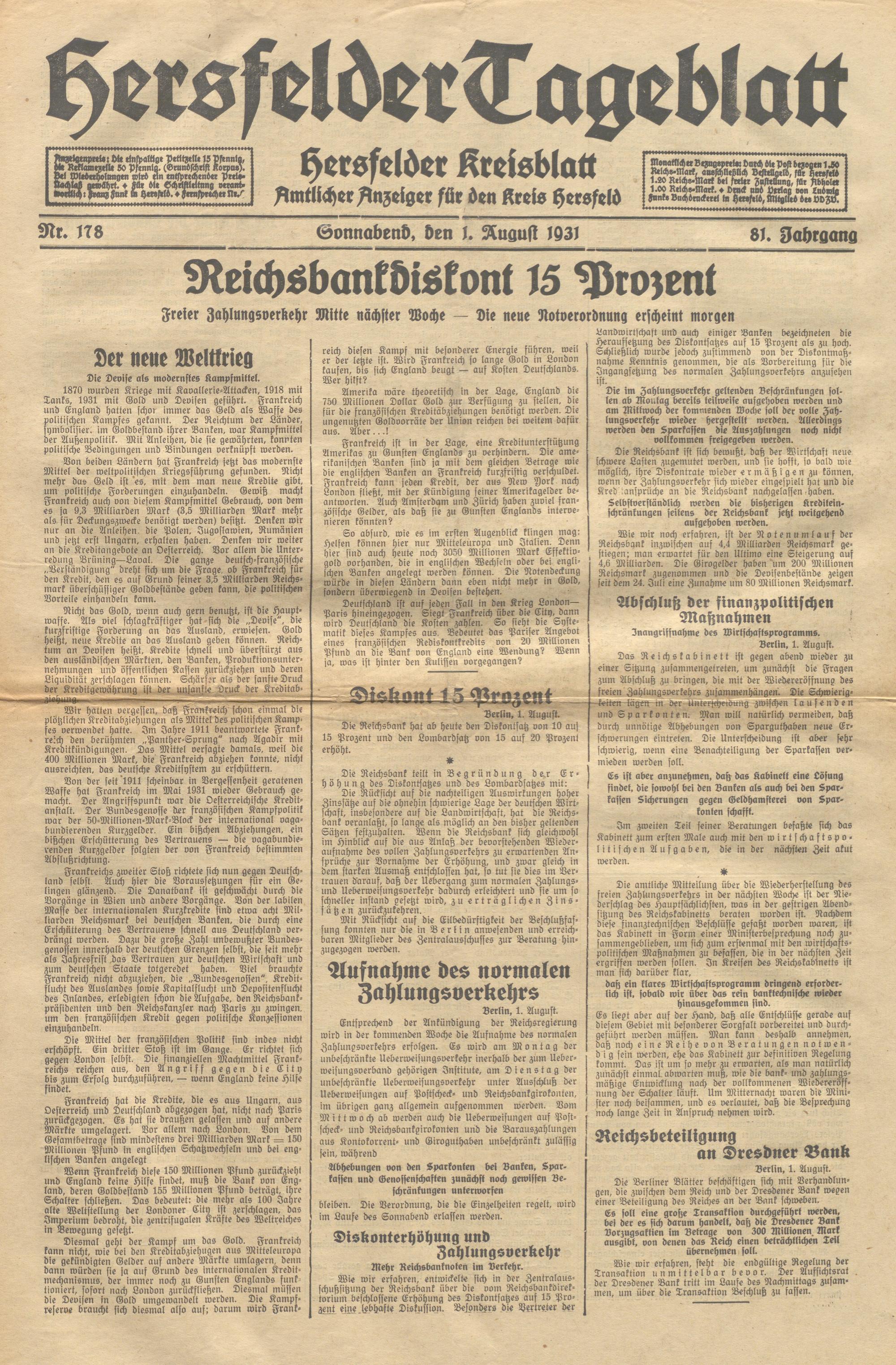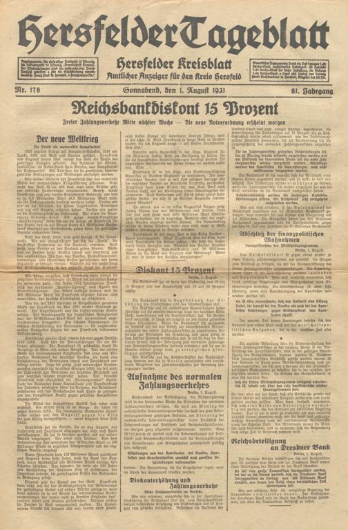 Hersfelder Tageblatt. 1913-1933