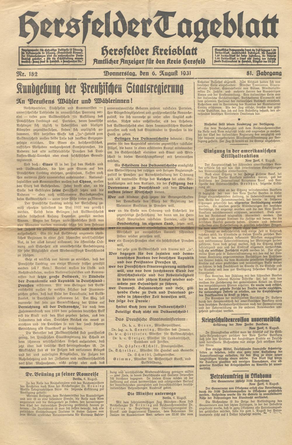 Hersfelder Tageblatt. 1913-1933