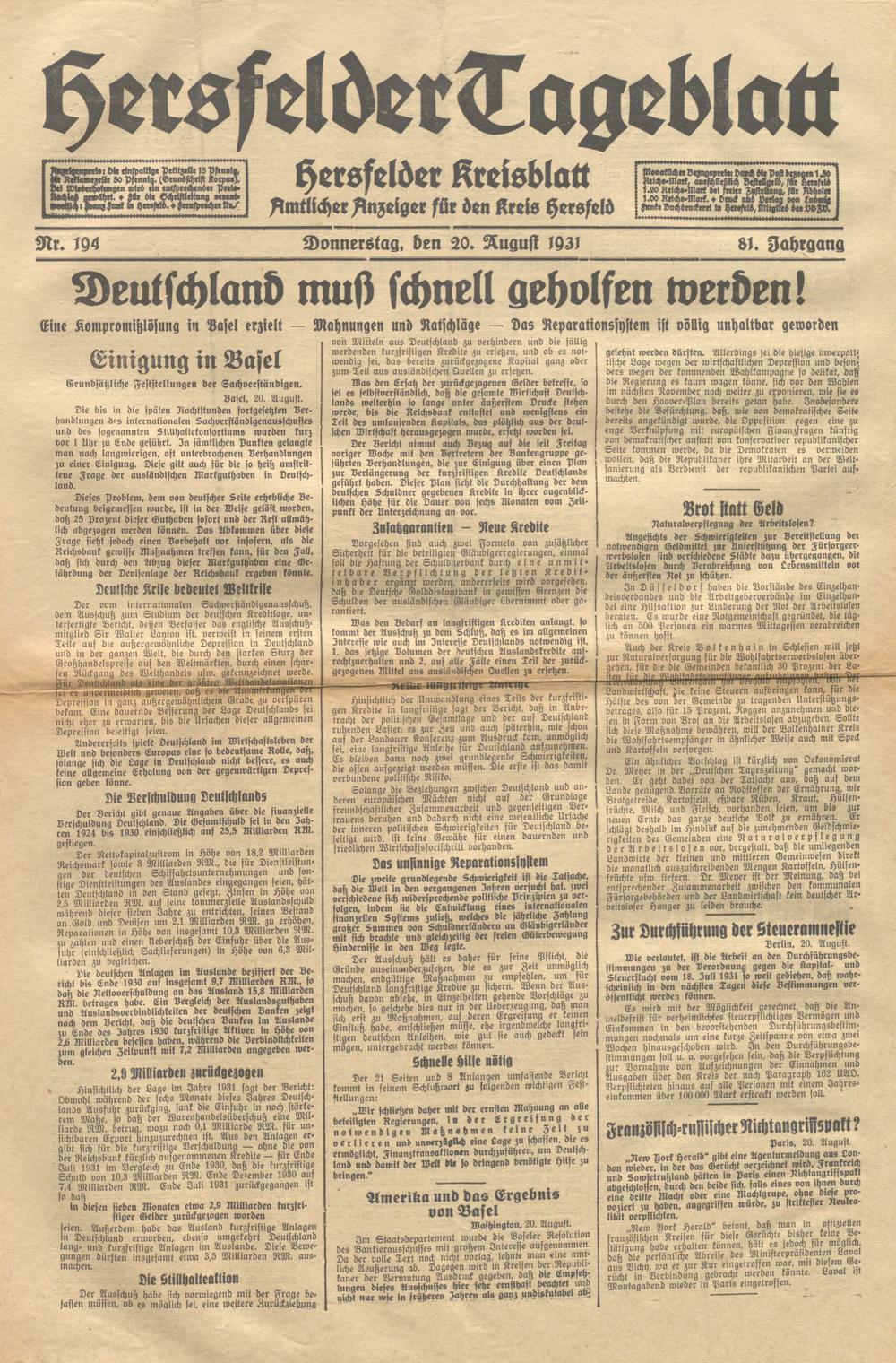 Hersfelder Tageblatt. 1913-1933