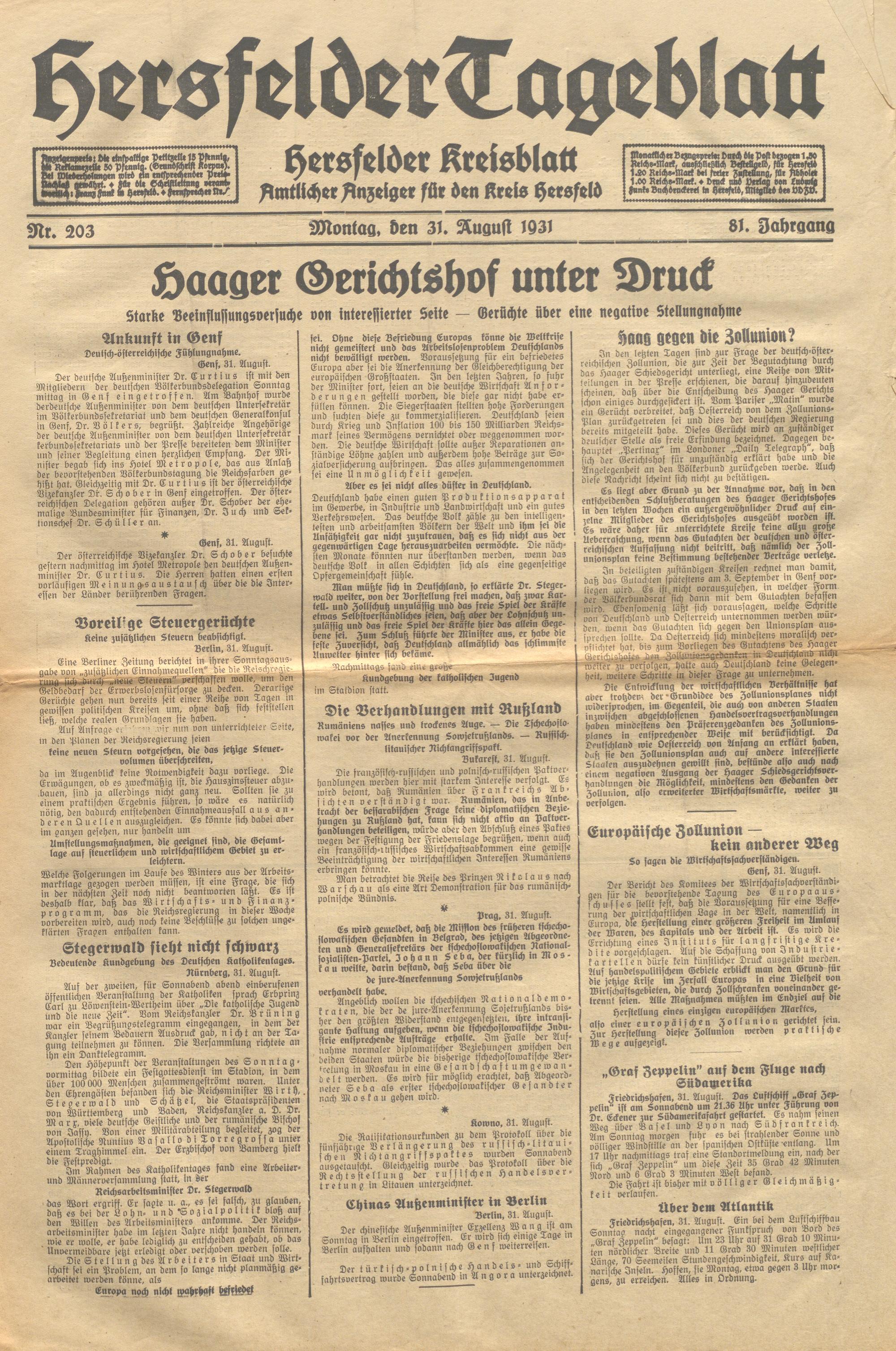 Hersfelder Tageblatt. 1913-1933