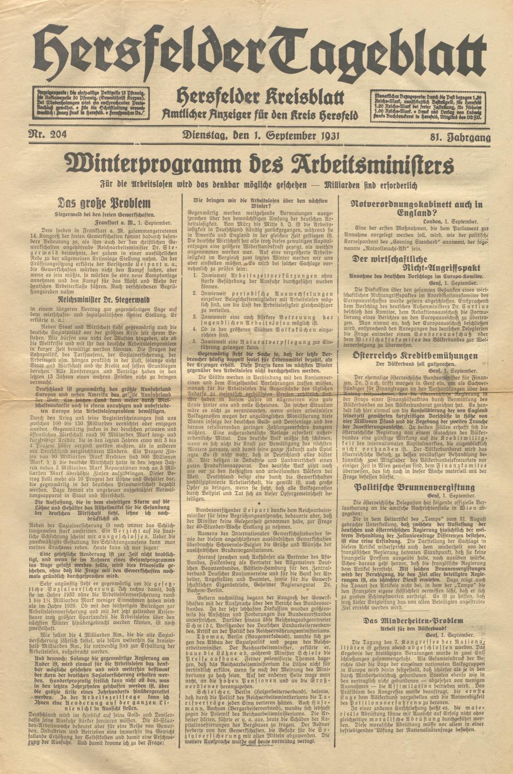 Hersfelder Tageblatt. 1913-1933