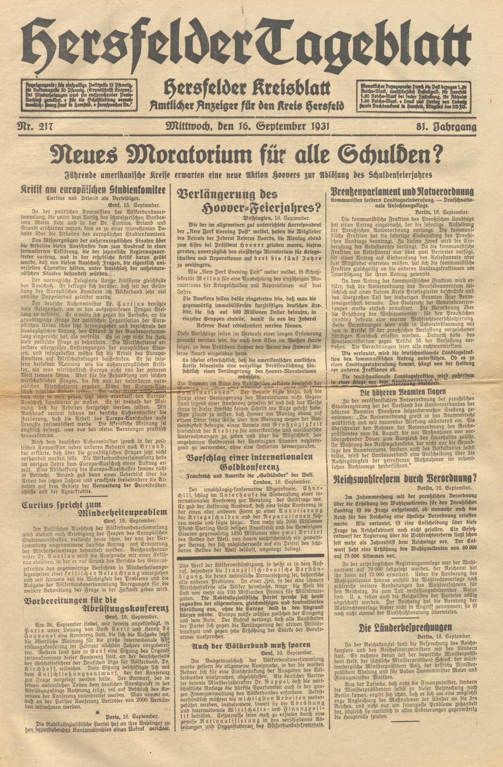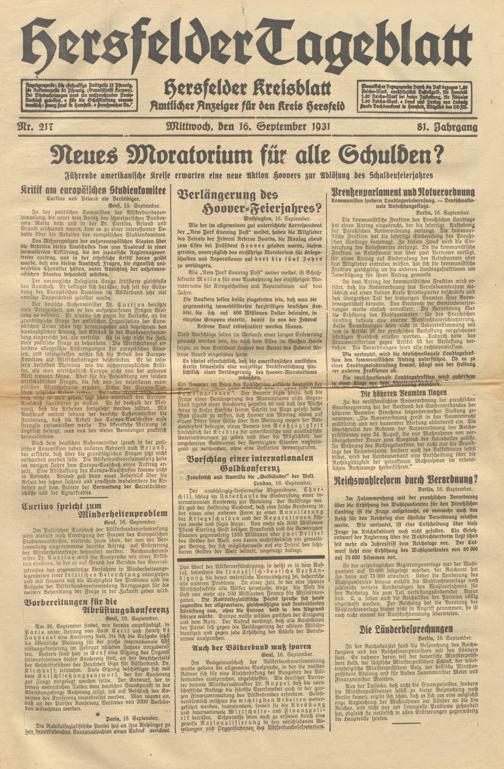 Hersfelder Tageblatt. 1913-1933