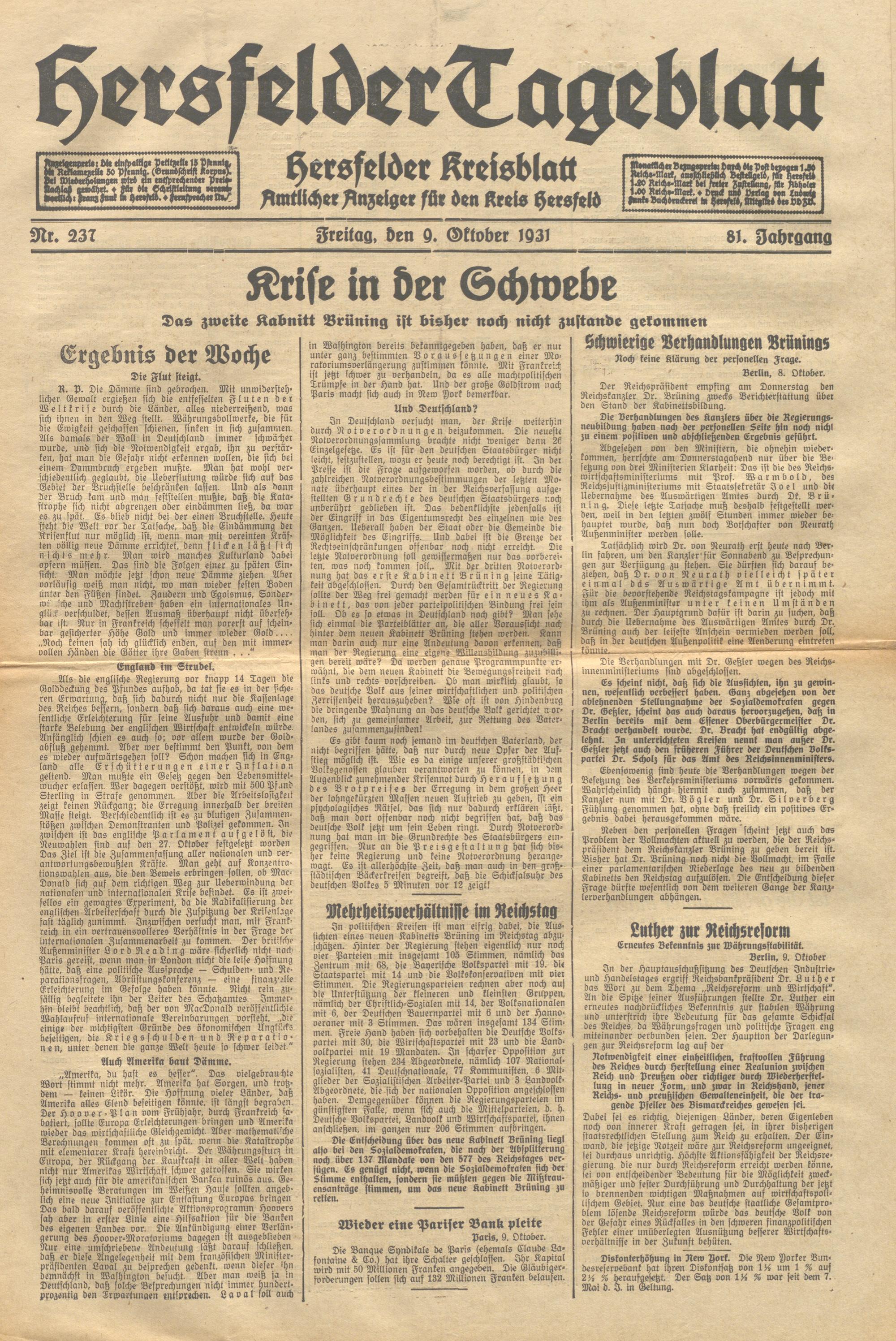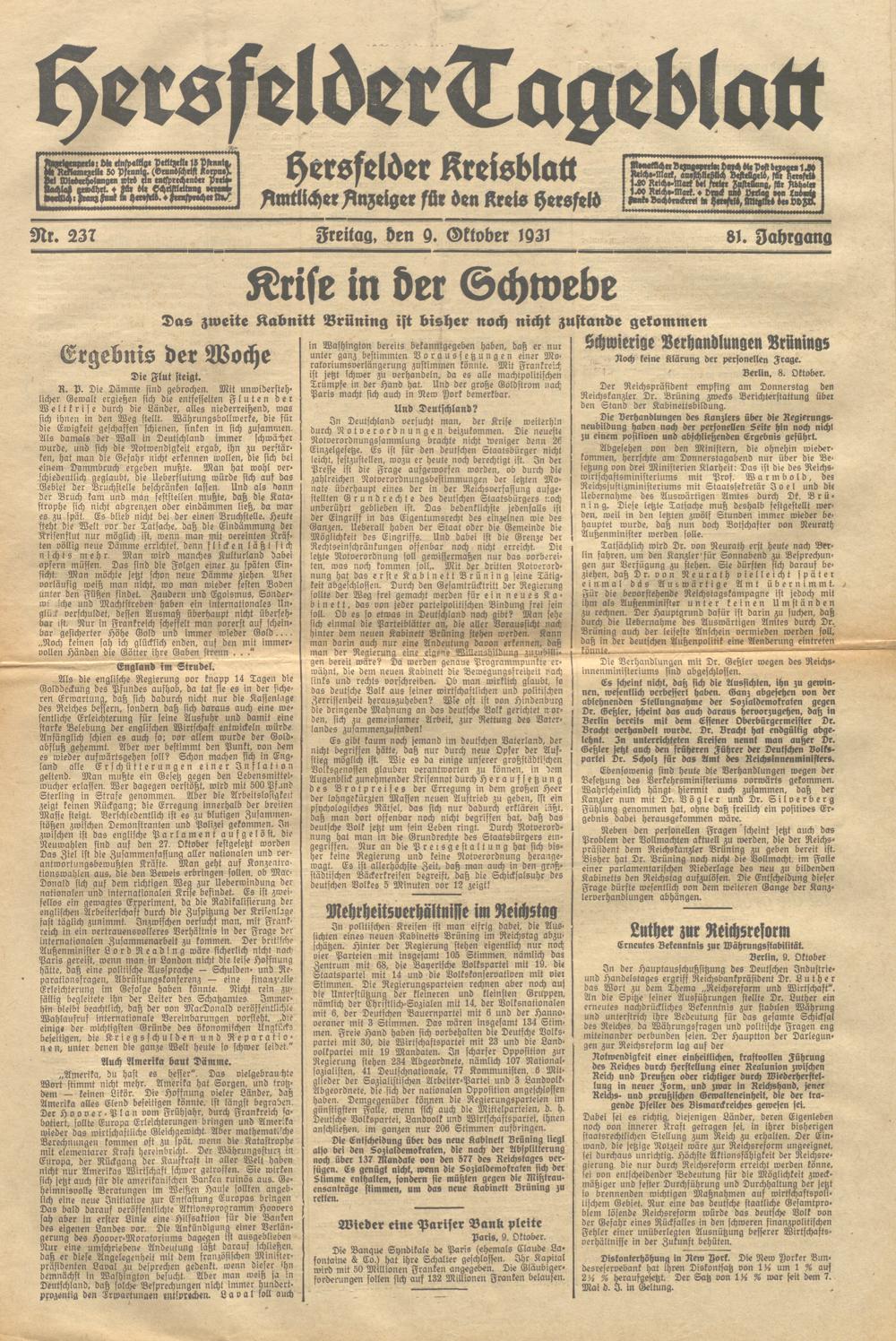 Hersfelder Tageblatt. 1913-1933