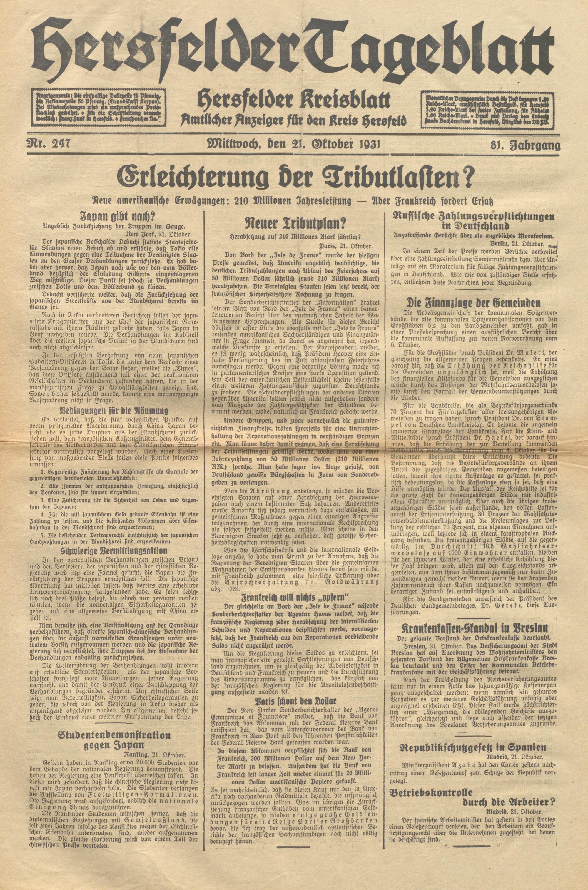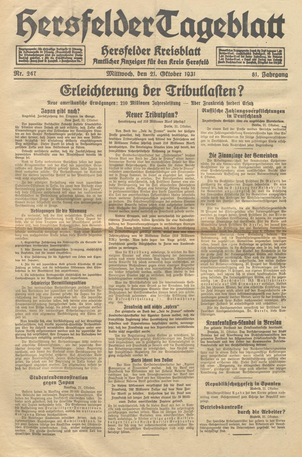 Hersfelder Tageblatt. 1913-1933