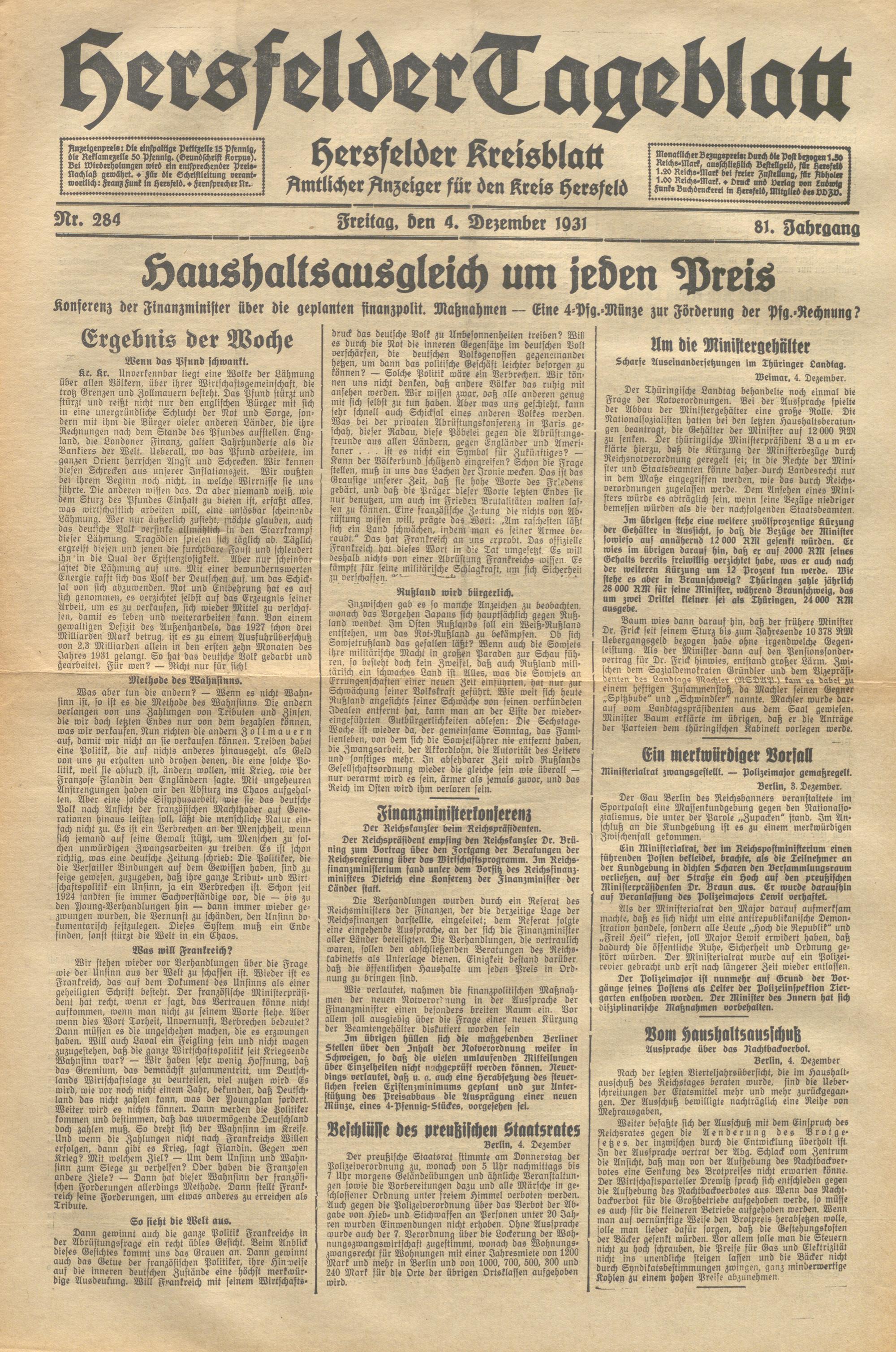 Hersfelder Tageblatt. 1913-1933