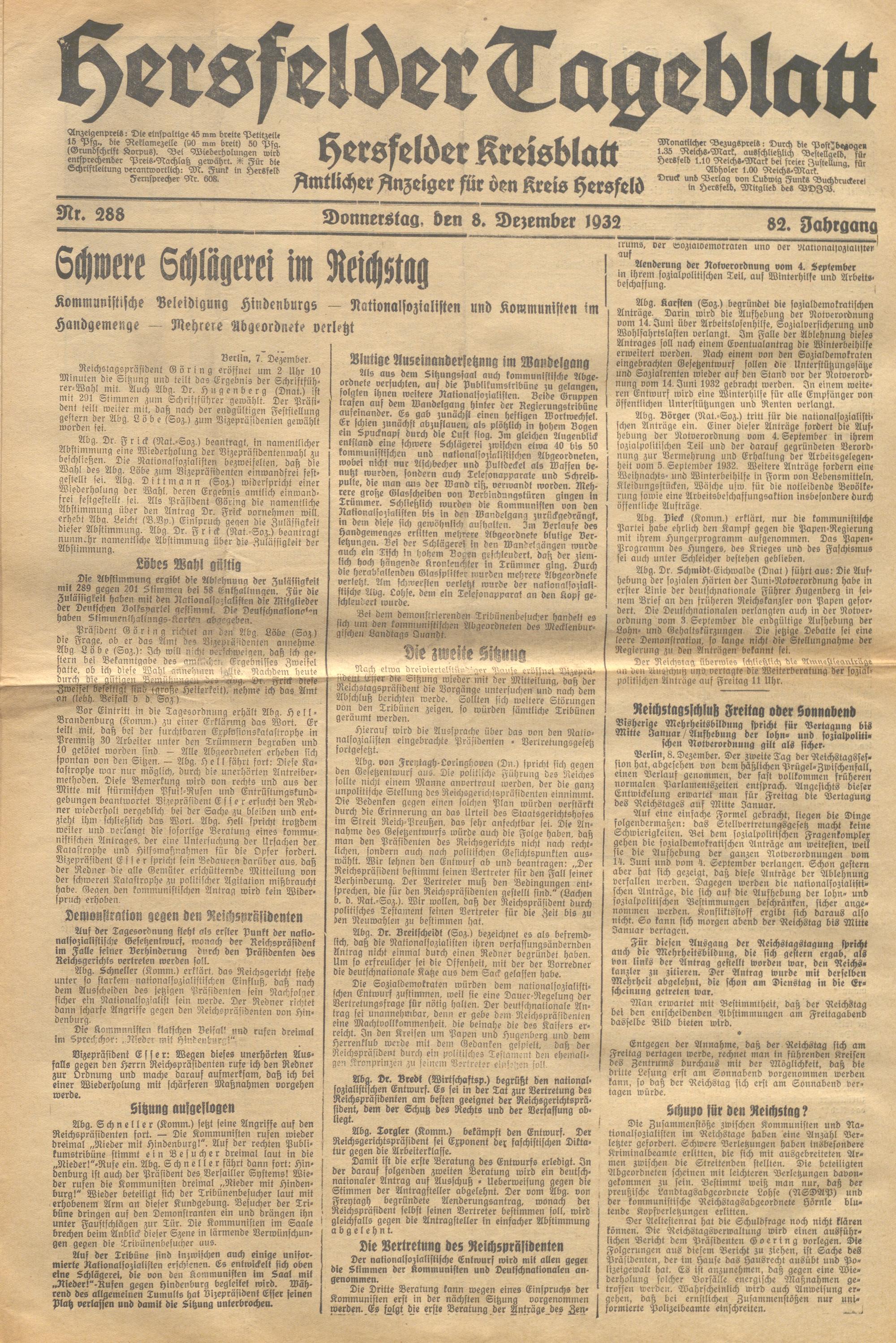 Hersfelder Tageblatt. 1913-1933