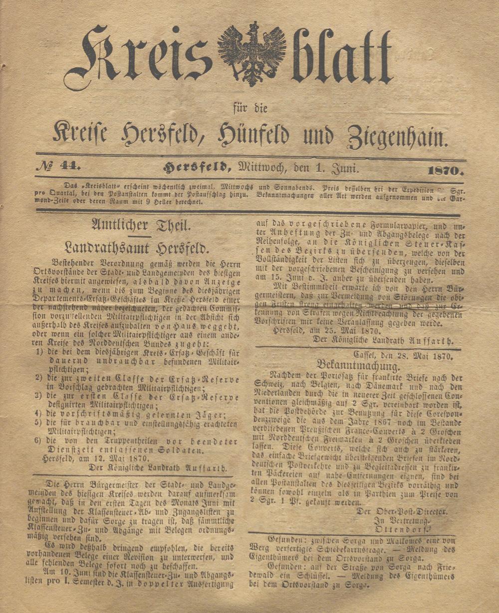 Hersfelder Kreisblatt. 1868-1913