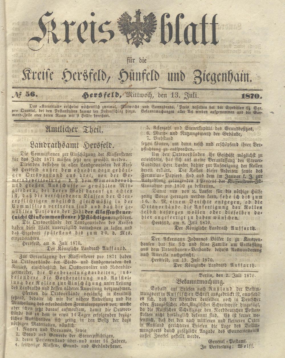 Hersfelder Kreisblatt. 1868-1913