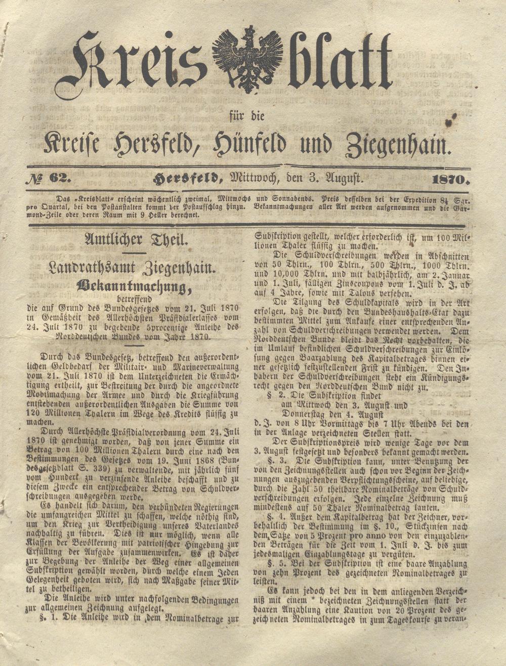 Hersfelder Kreisblatt. 1868-1913