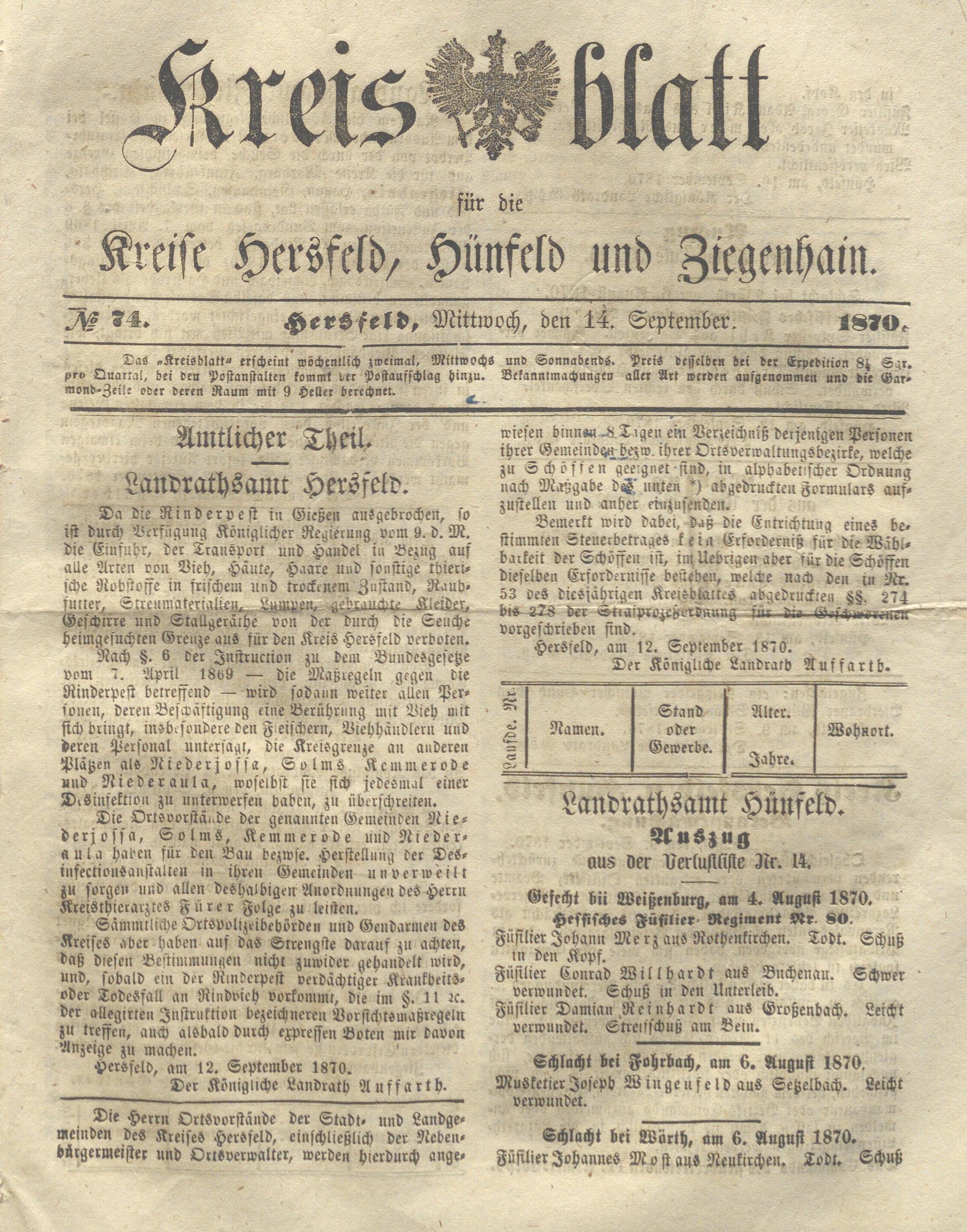 Hersfelder Kreisblatt. 1868-1913