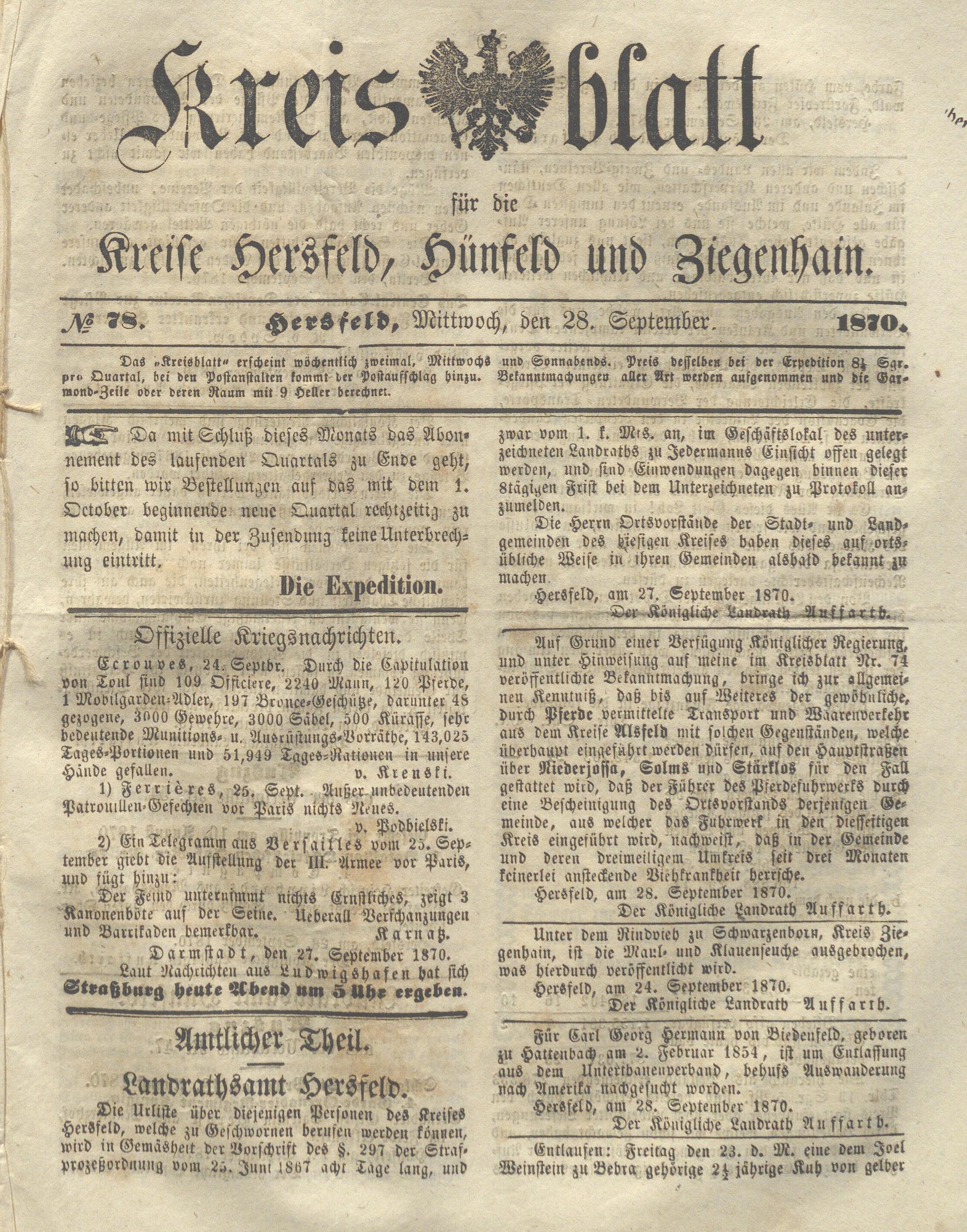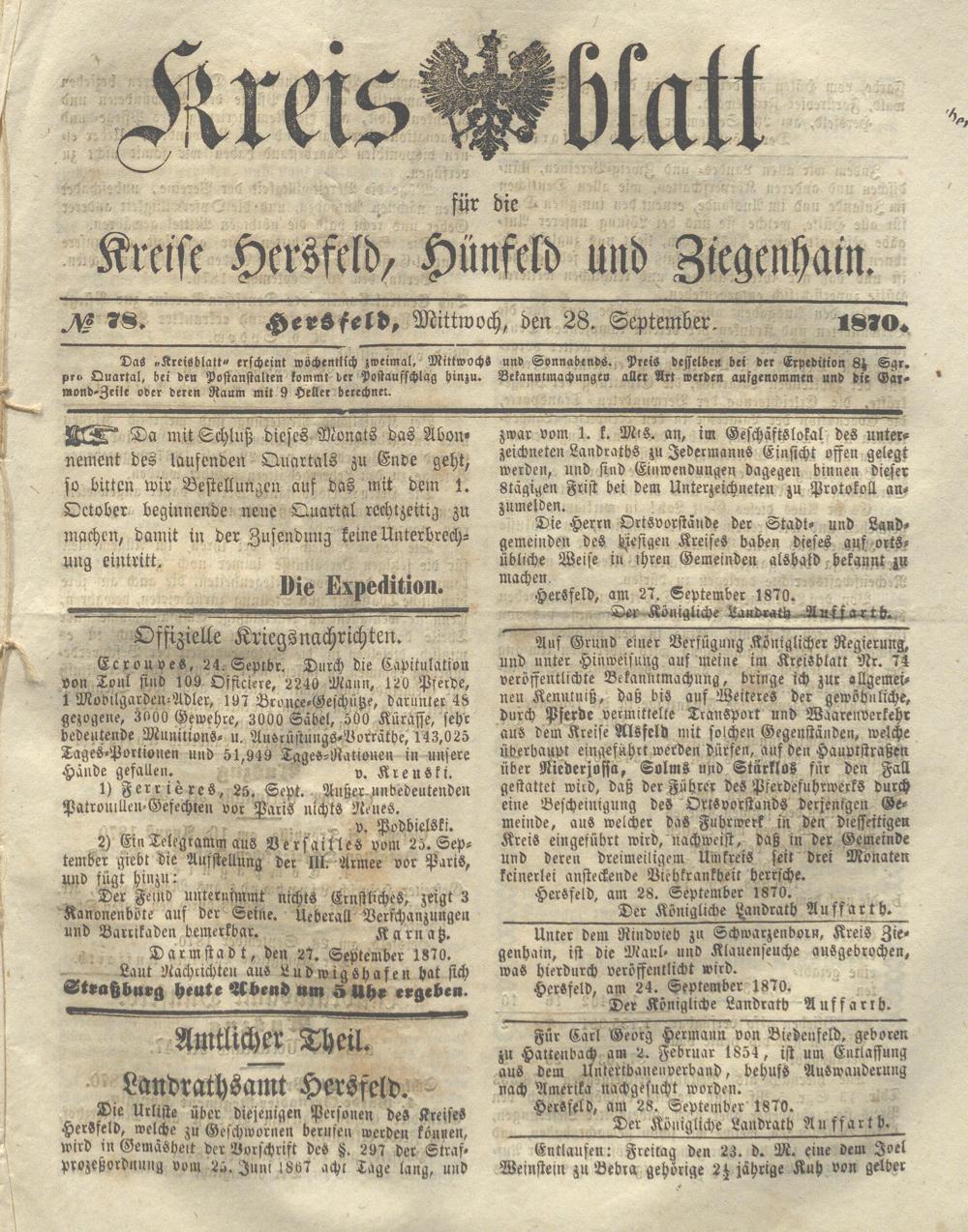 Hersfelder Kreisblatt. 1868-1913