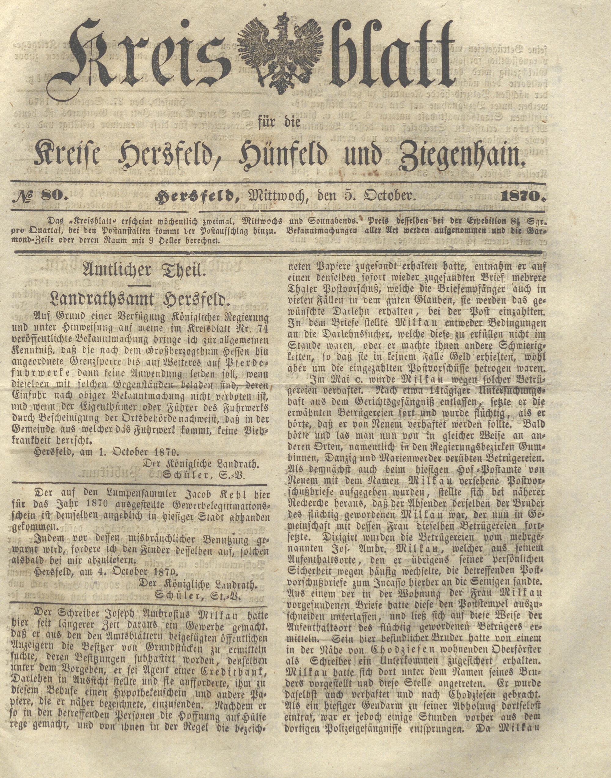Hersfelder Kreisblatt. 1868-1913
