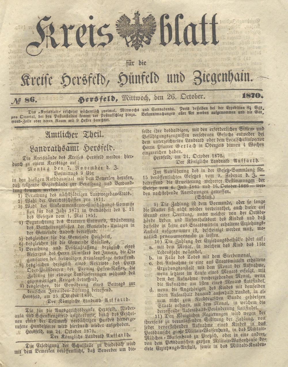 Hersfelder Kreisblatt. 1868-1913