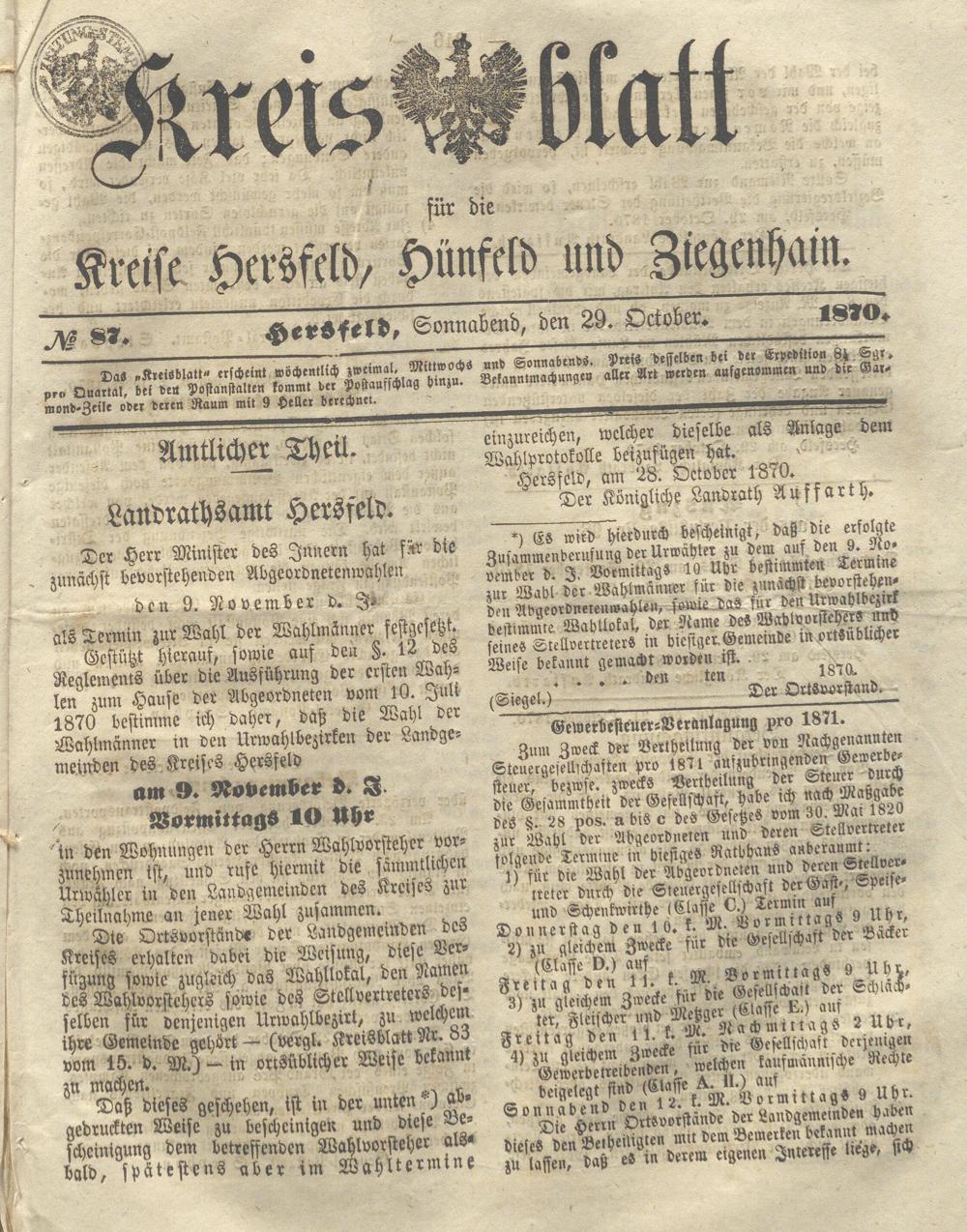 Hersfelder Kreisblatt. 1868-1913