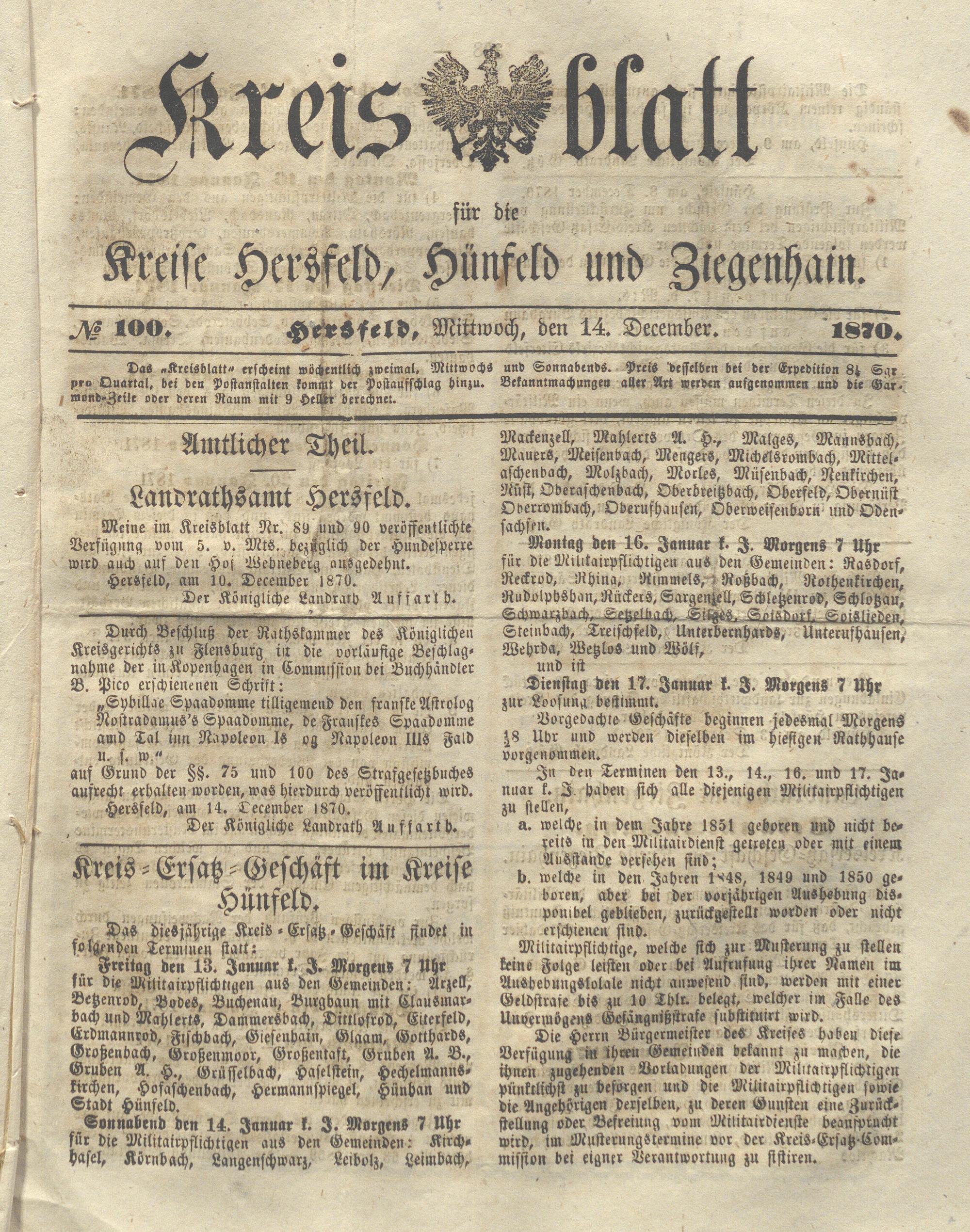 Hersfelder Kreisblatt. 1868-1913