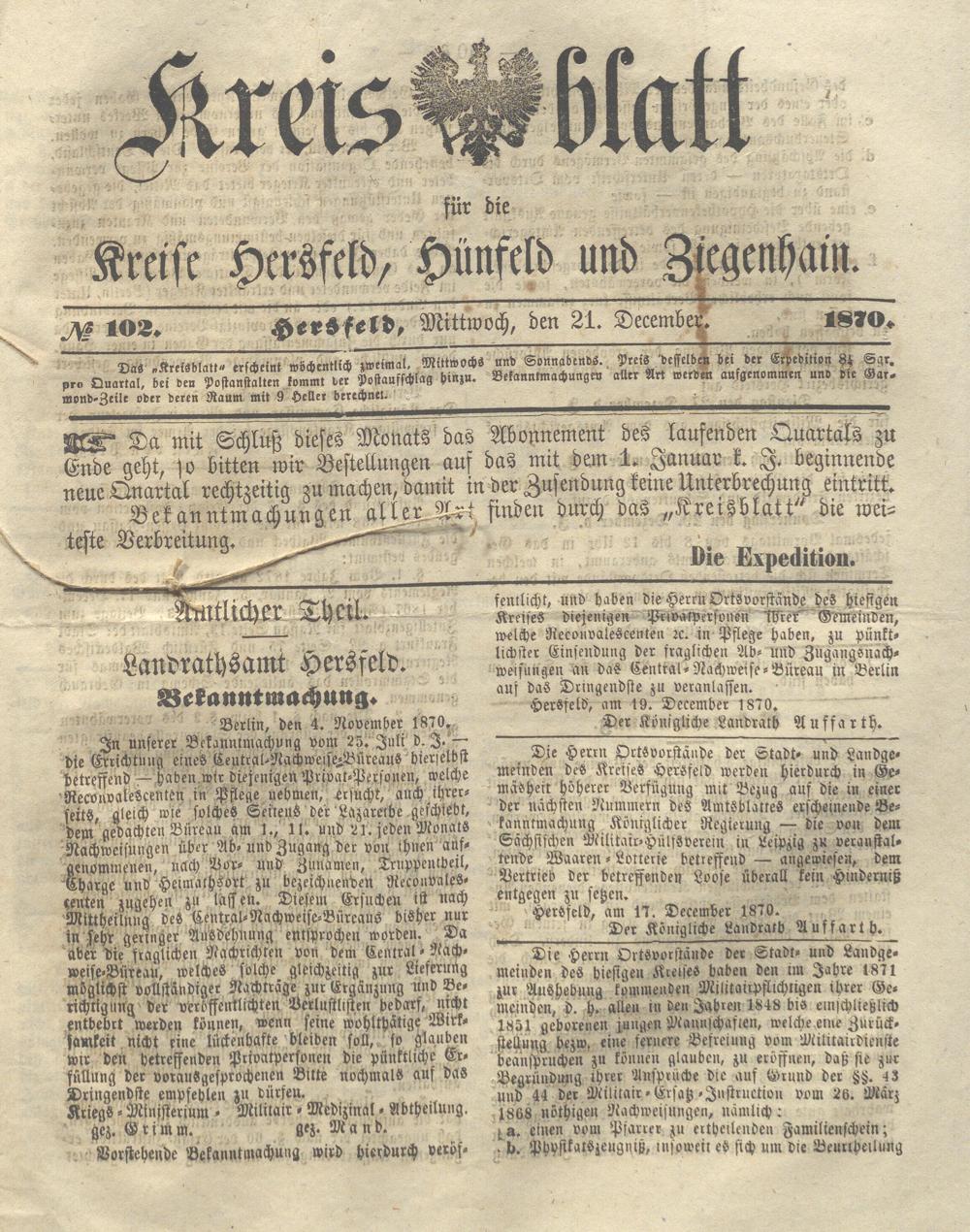 Hersfelder Kreisblatt. 1868-1913