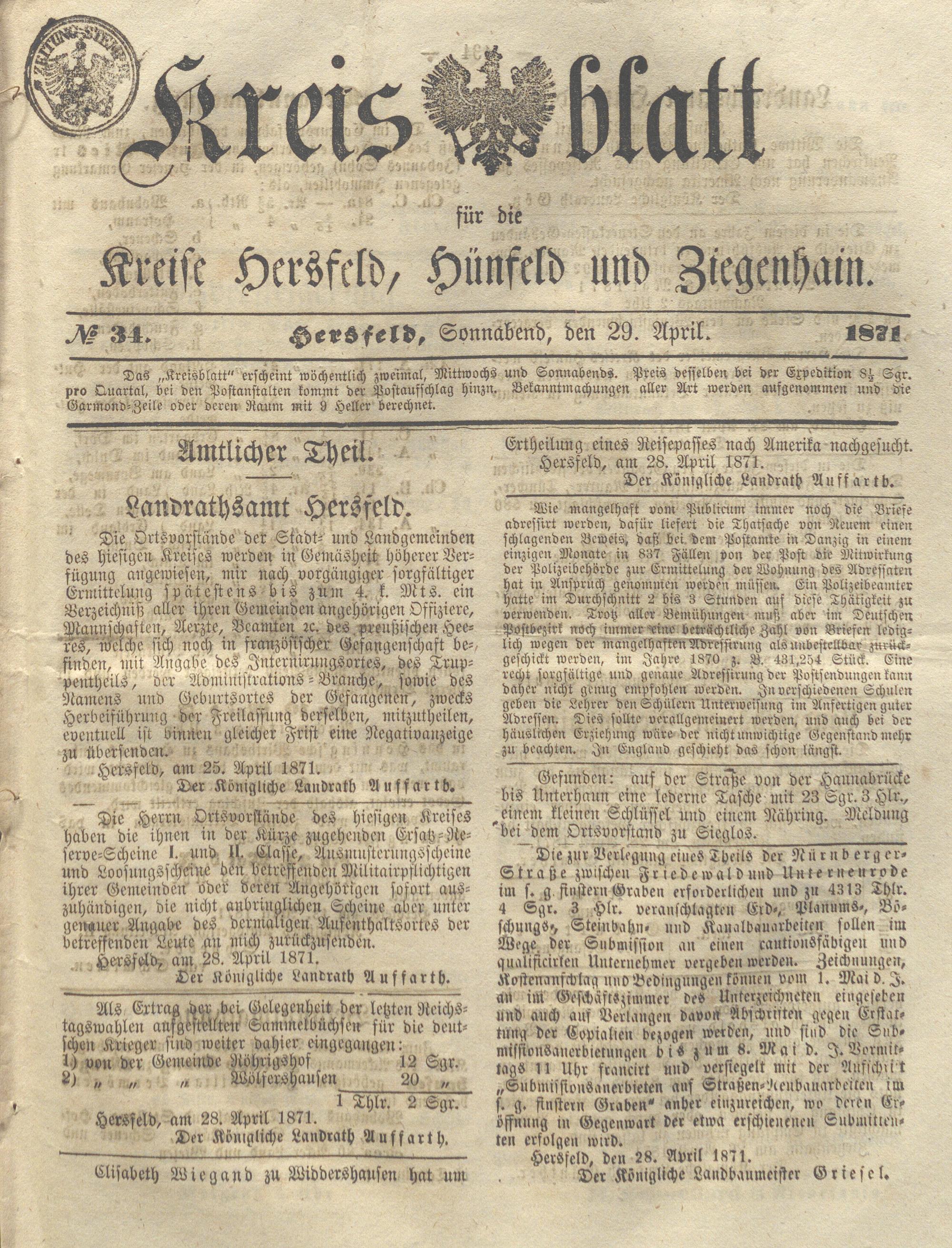 Hersfelder Kreisblatt. 1868-1913