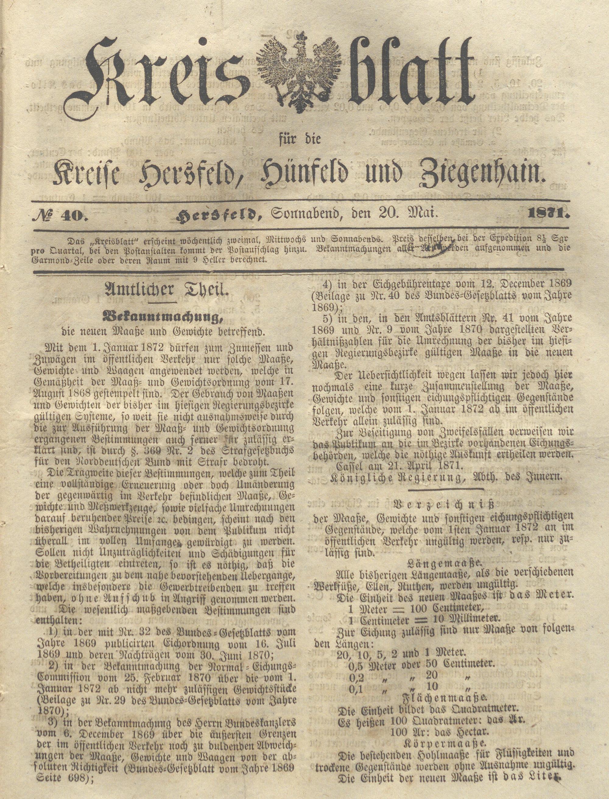 Hersfelder Kreisblatt. 1868-1913