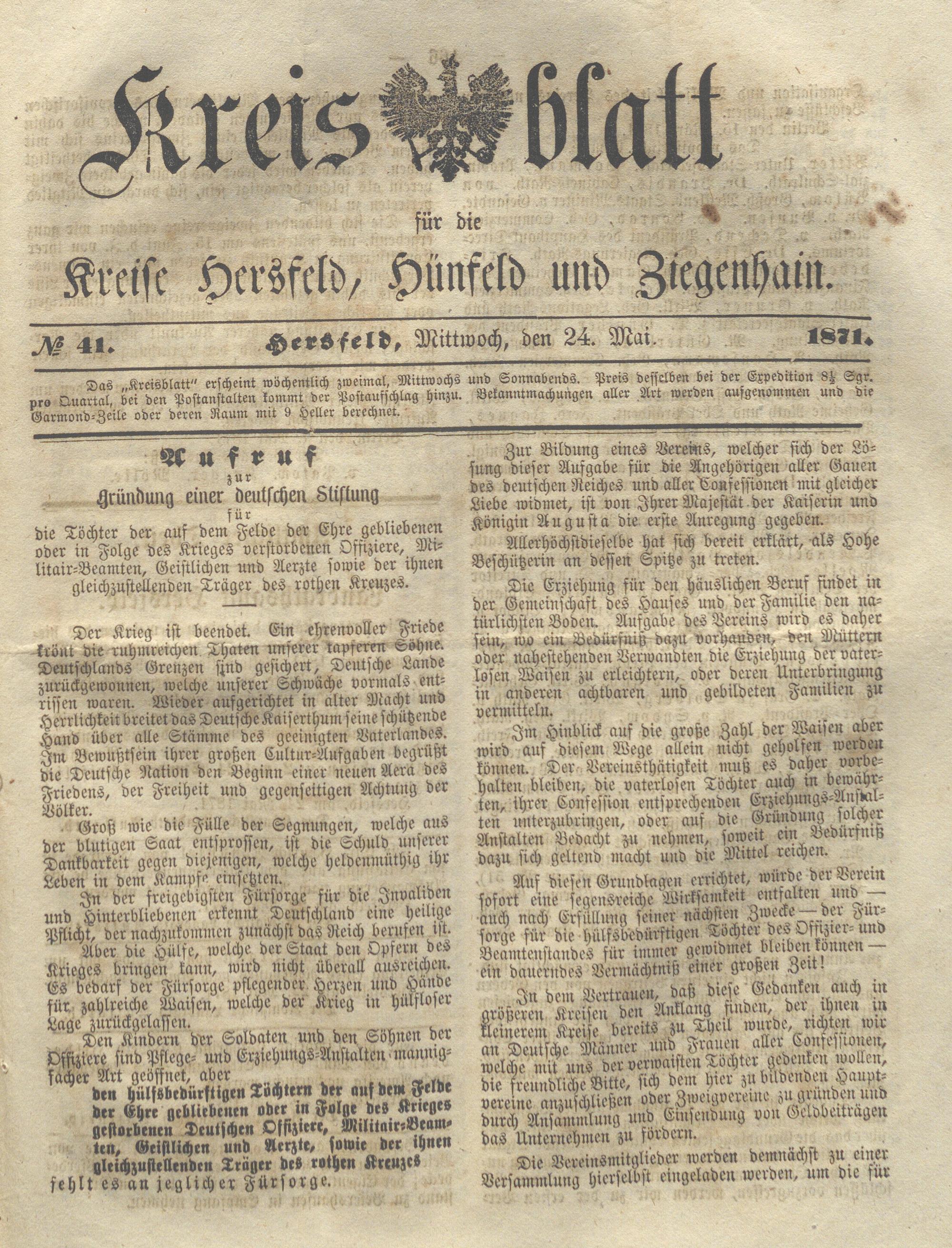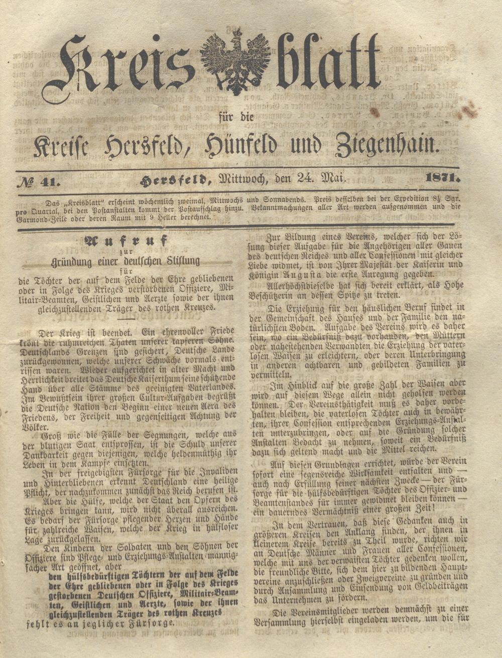 Hersfelder Kreisblatt. 1868-1913