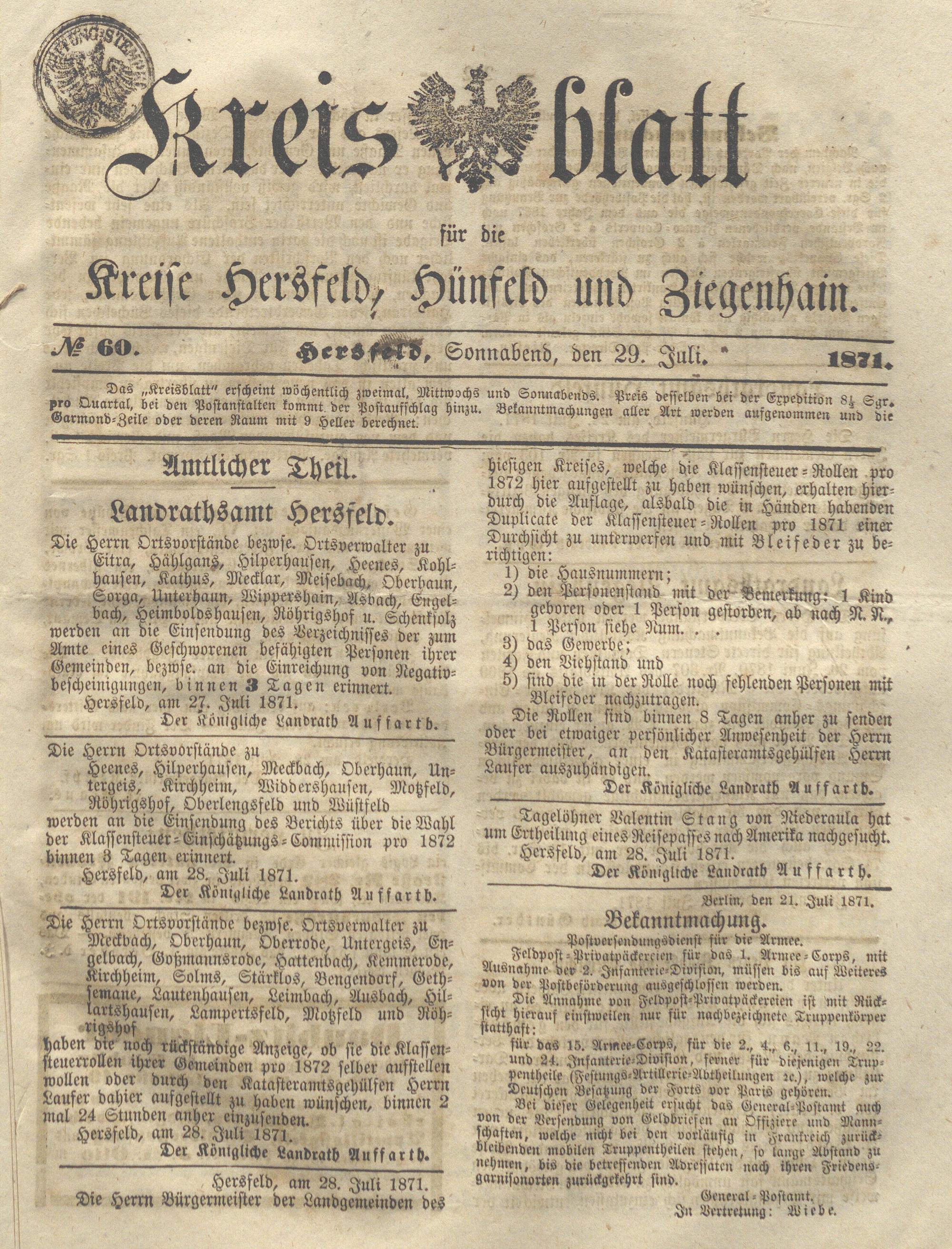 Hersfelder Kreisblatt. 1868-1913