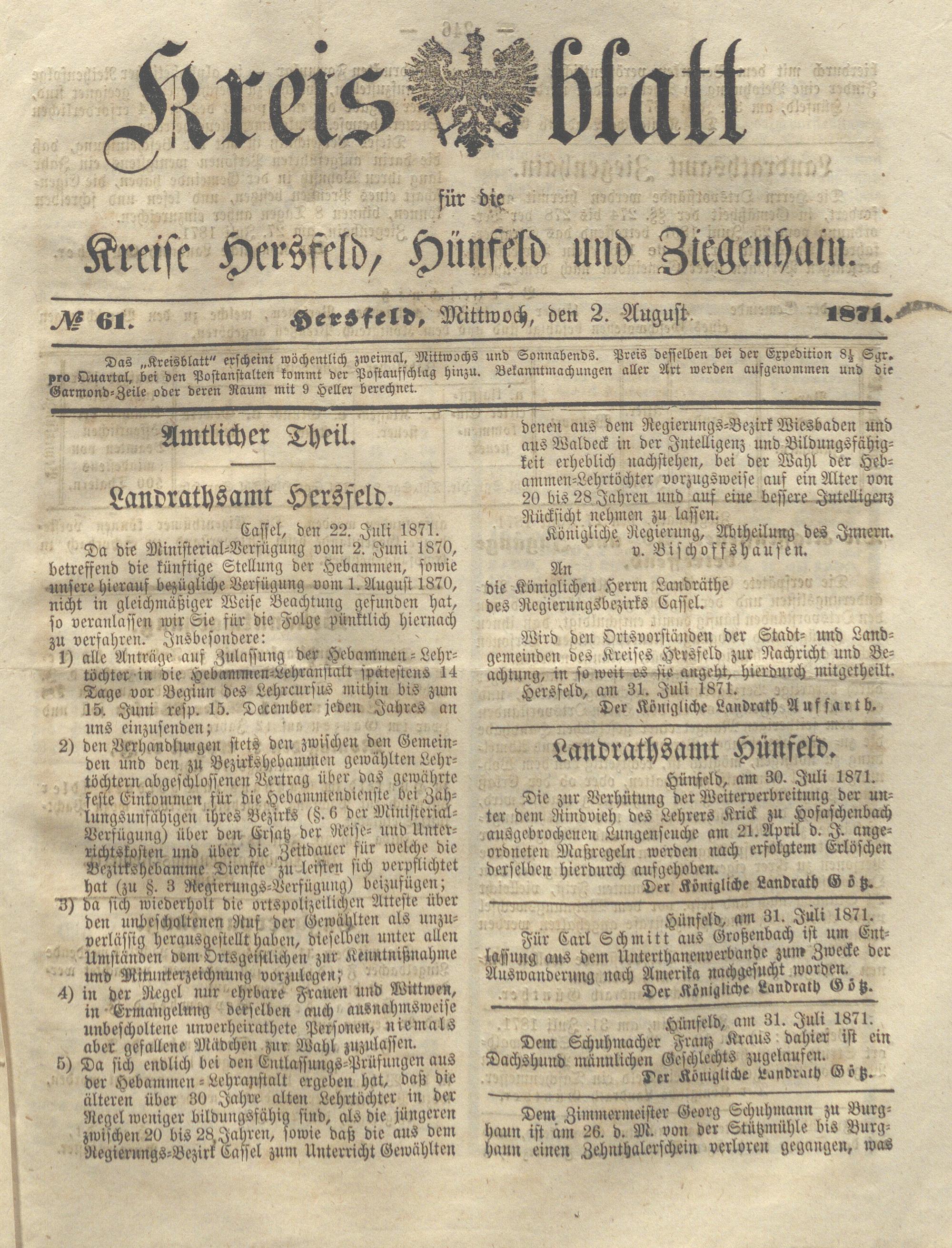 Hersfelder Kreisblatt. 1868-1913