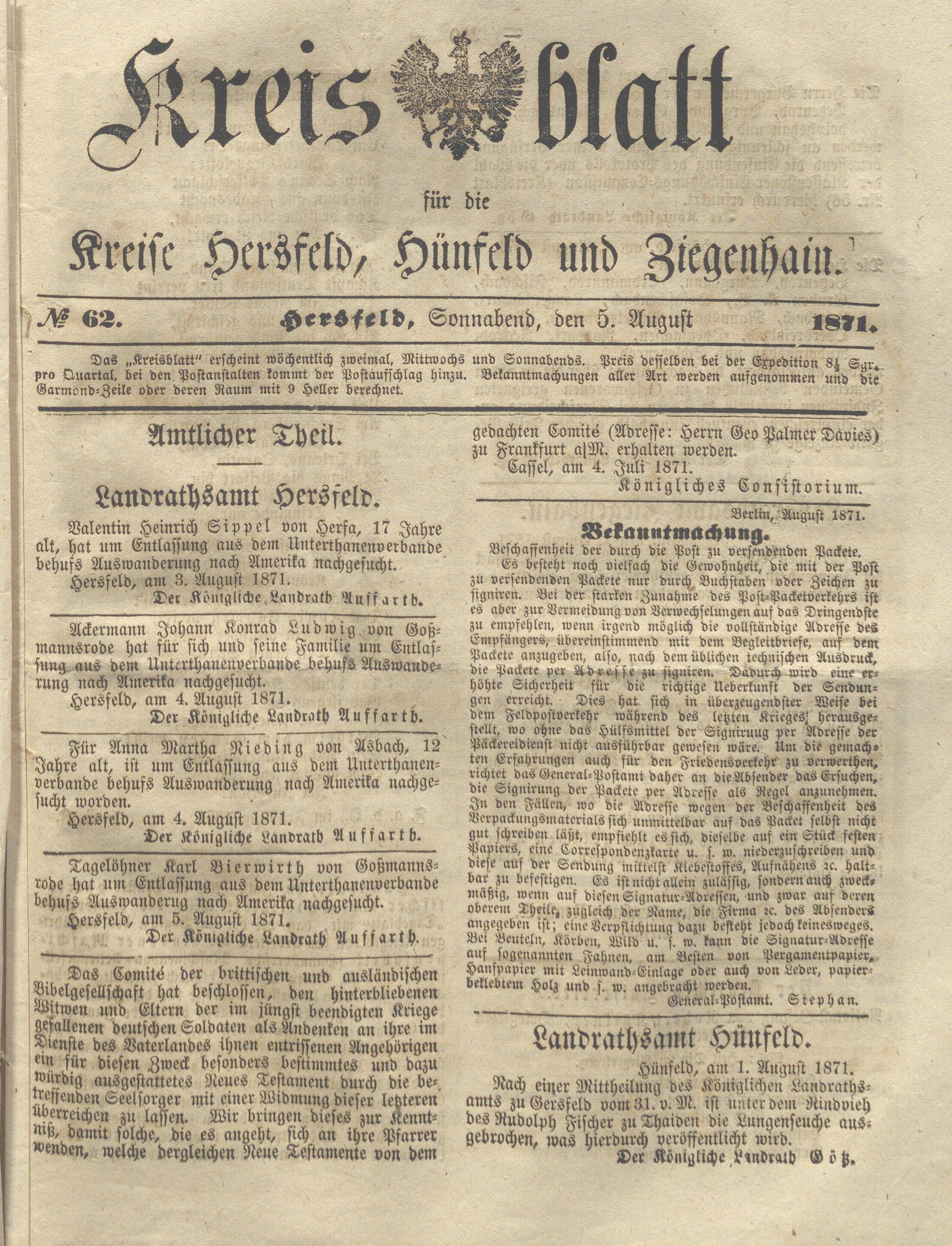 Hersfelder Kreisblatt. 1868-1913