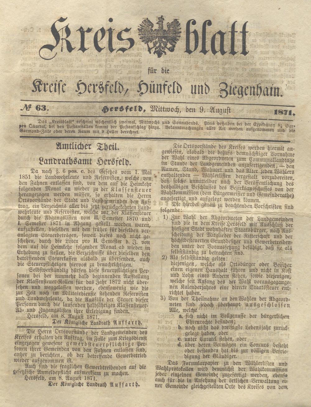 Hersfelder Kreisblatt. 1868-1913