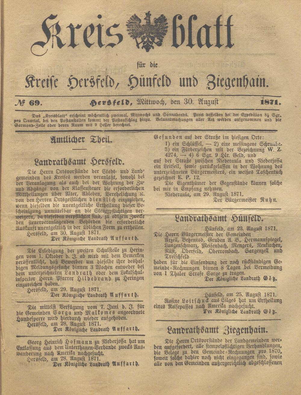 Hersfelder Kreisblatt. 1868-1913