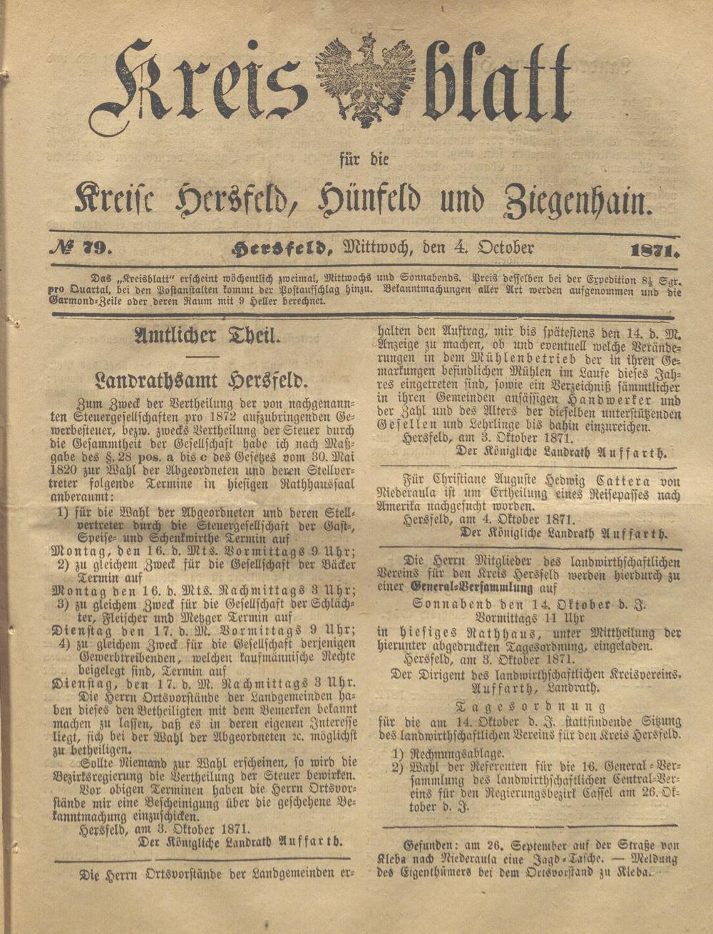 Hersfelder Kreisblatt. 1868-1913