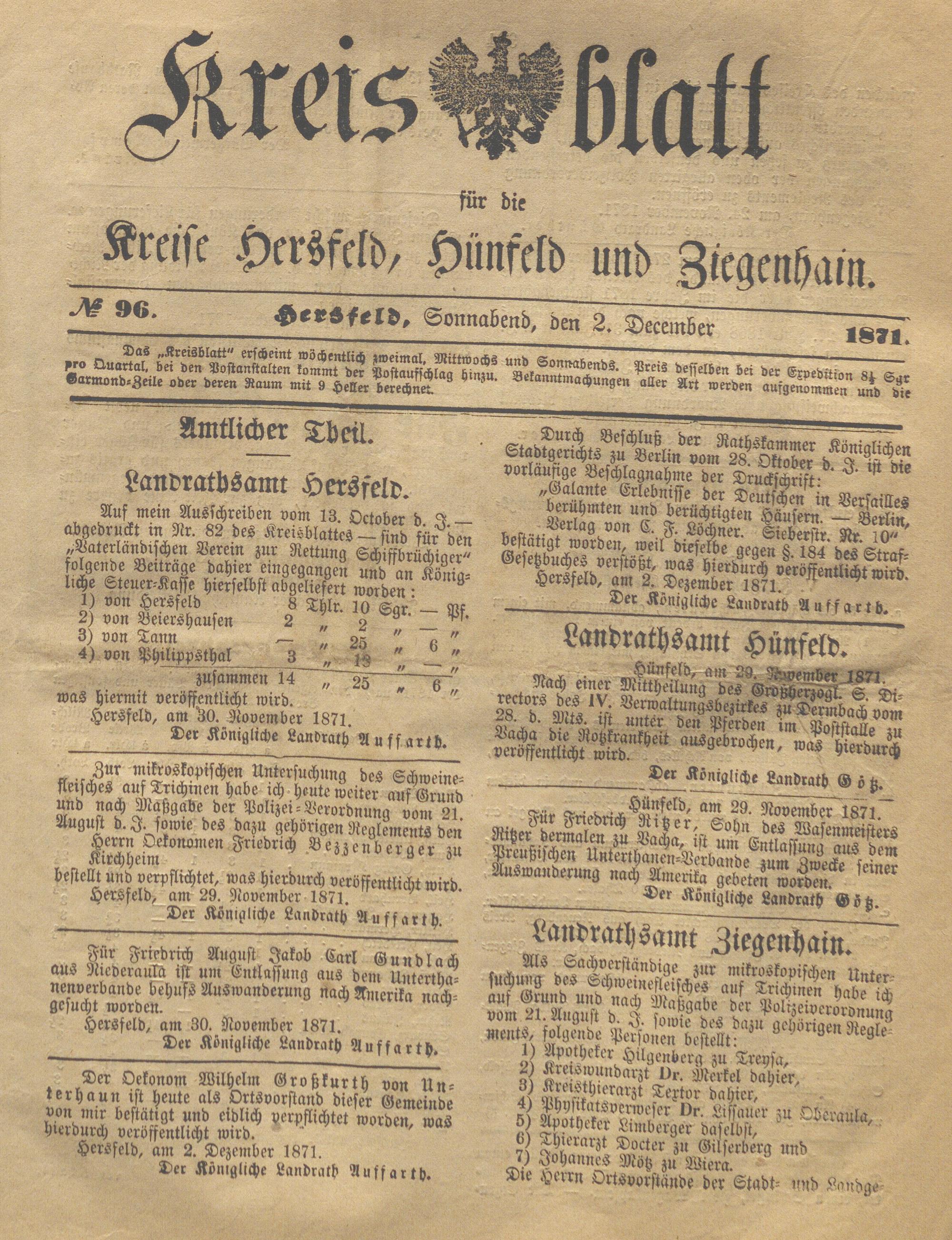 Hersfelder Kreisblatt. 1868-1913