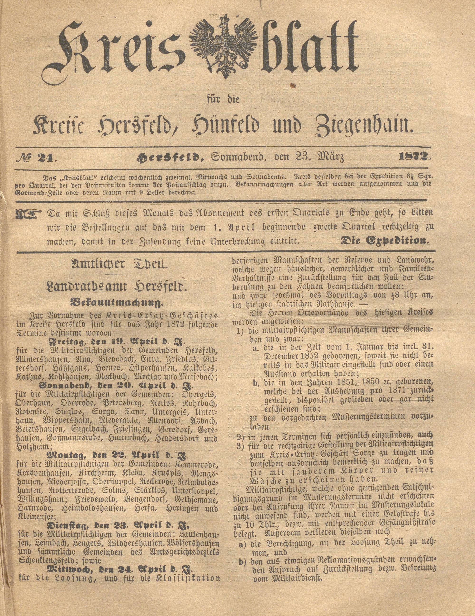 Hersfelder Kreisblatt. 1868-1913