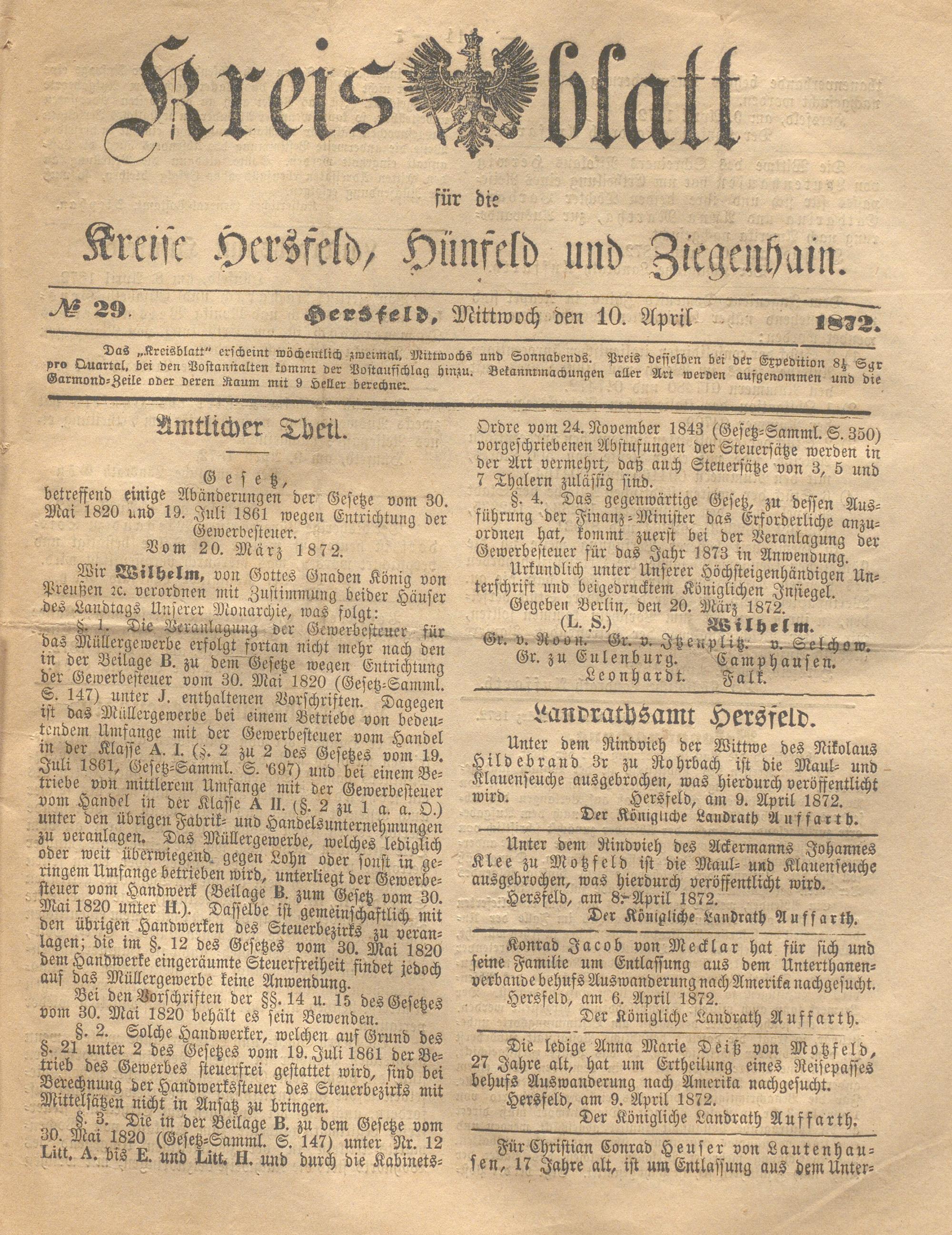 Hersfelder Kreisblatt. 1868-1913