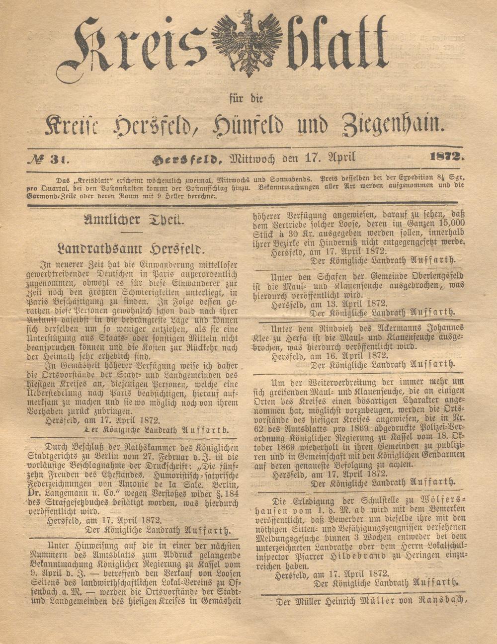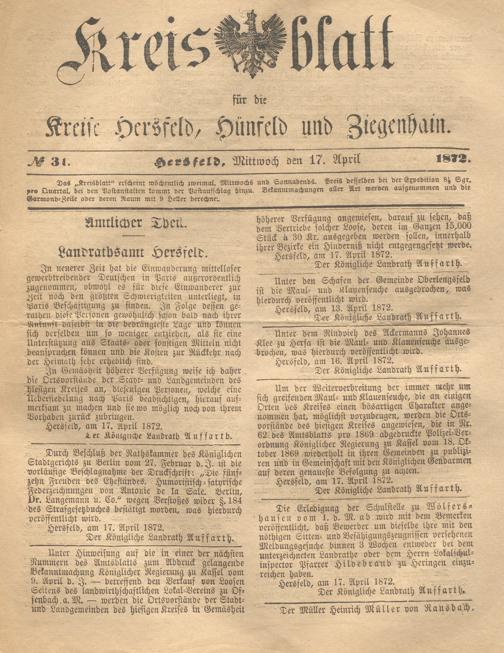 Hersfelder Kreisblatt. 1868-1913