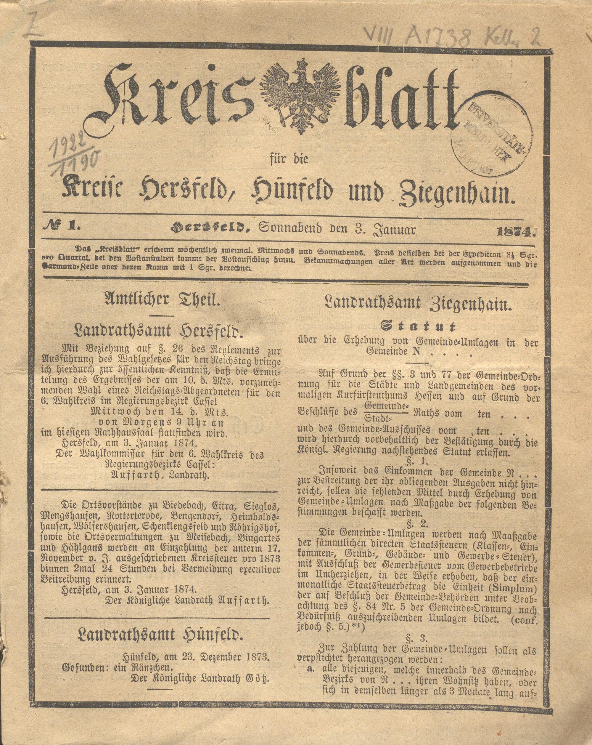 Hersfelder Kreisblatt. 1868-1913