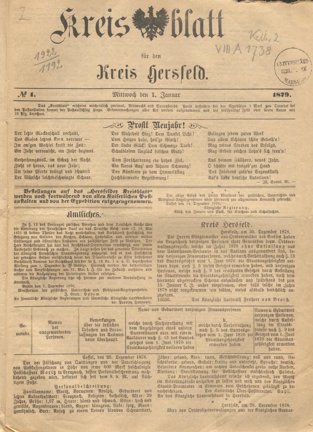 Hersfelder Kreisblatt. 1868-1913