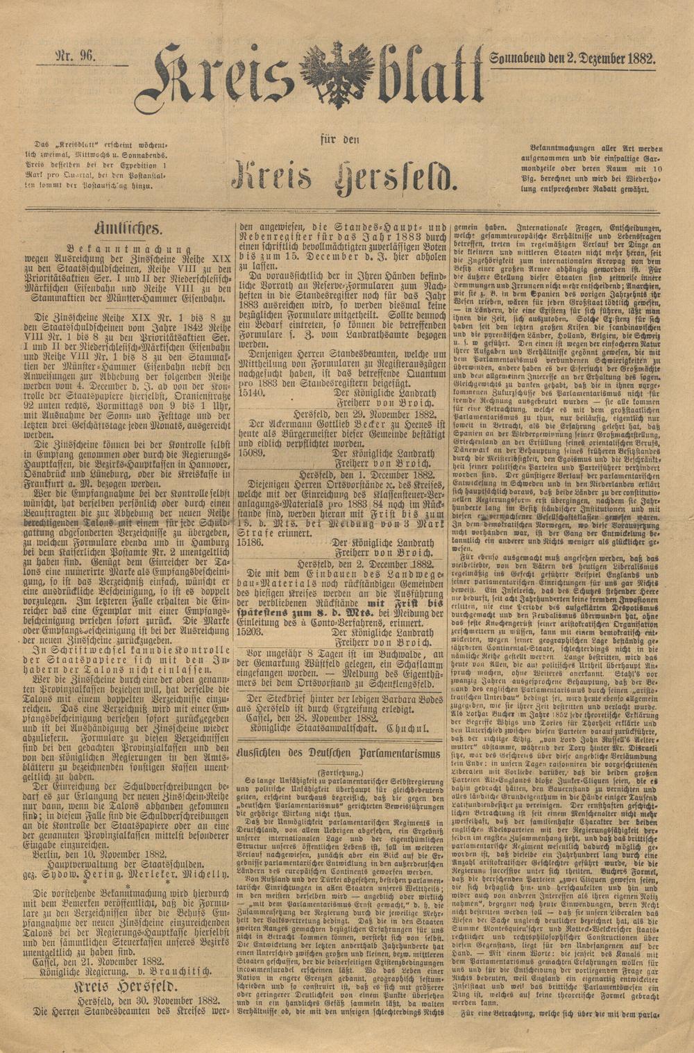 Hersfelder Kreisblatt. 1868-1913