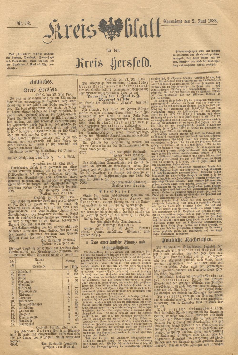 Hersfelder Kreisblatt. 1868-1913