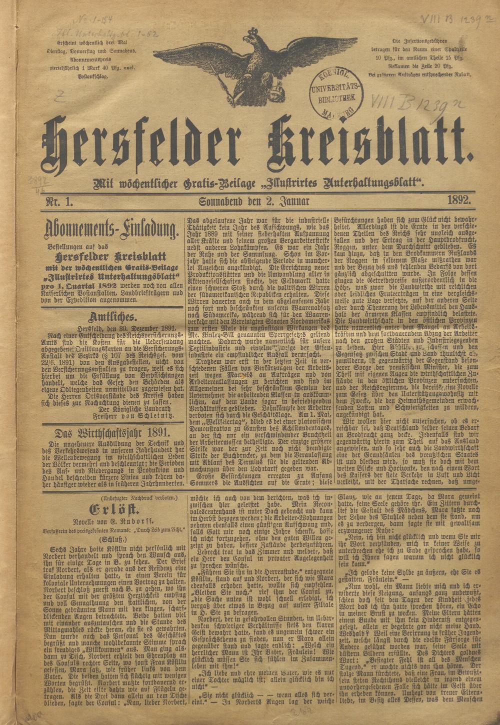 Hersfelder Kreisblatt. 1868-1913