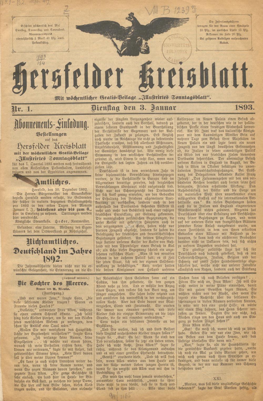 Hersfelder Kreisblatt. 1868-1913