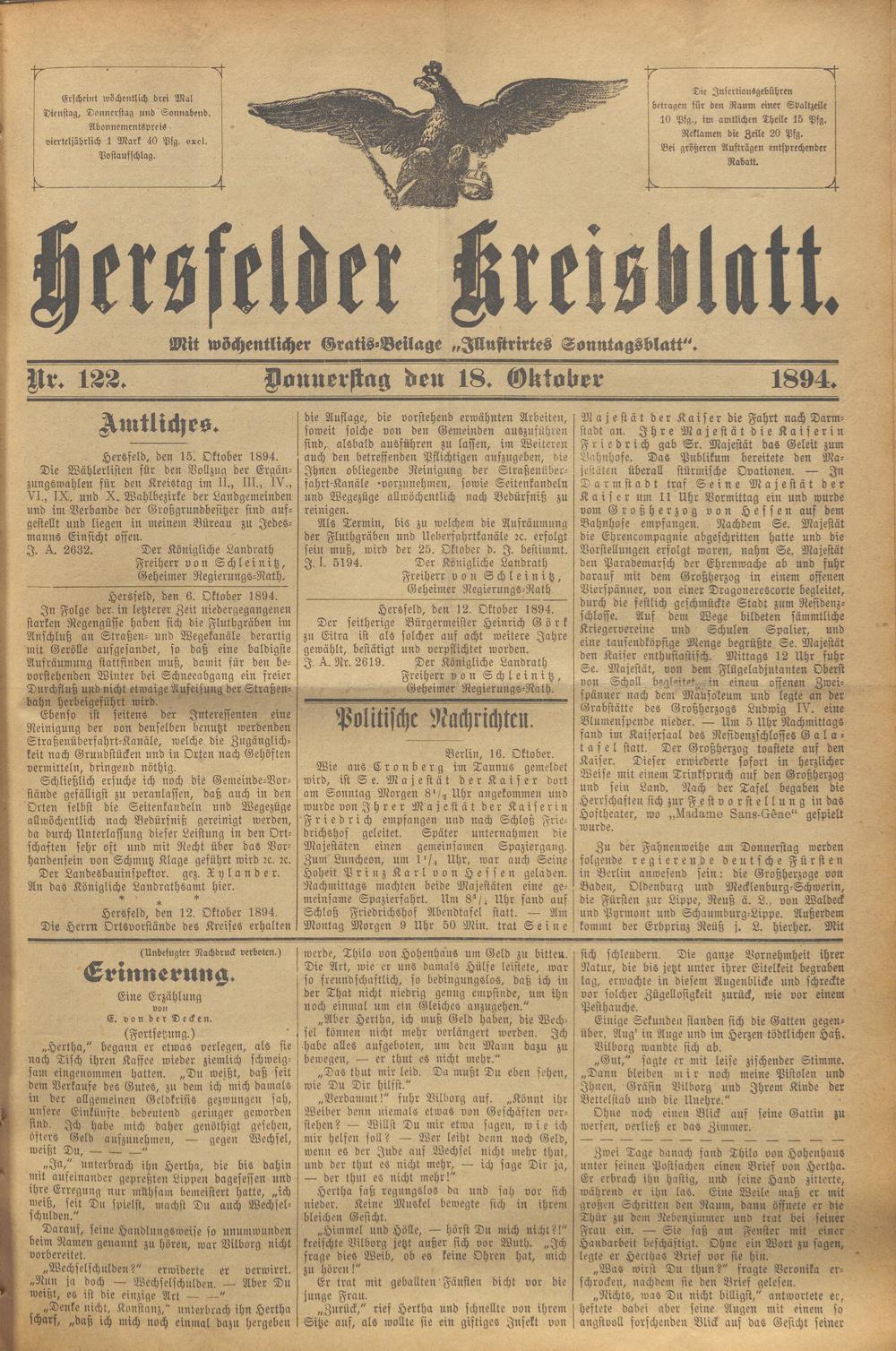 Hersfelder Kreisblatt. 1868-1913