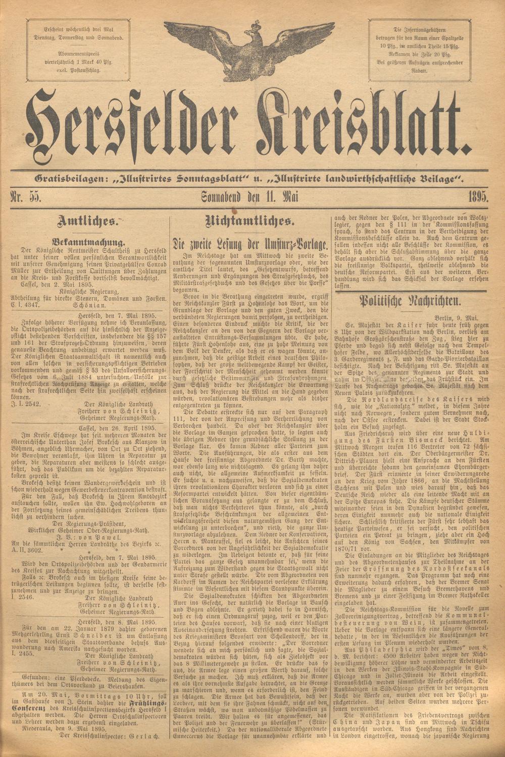 Hersfelder Kreisblatt. 1868-1913