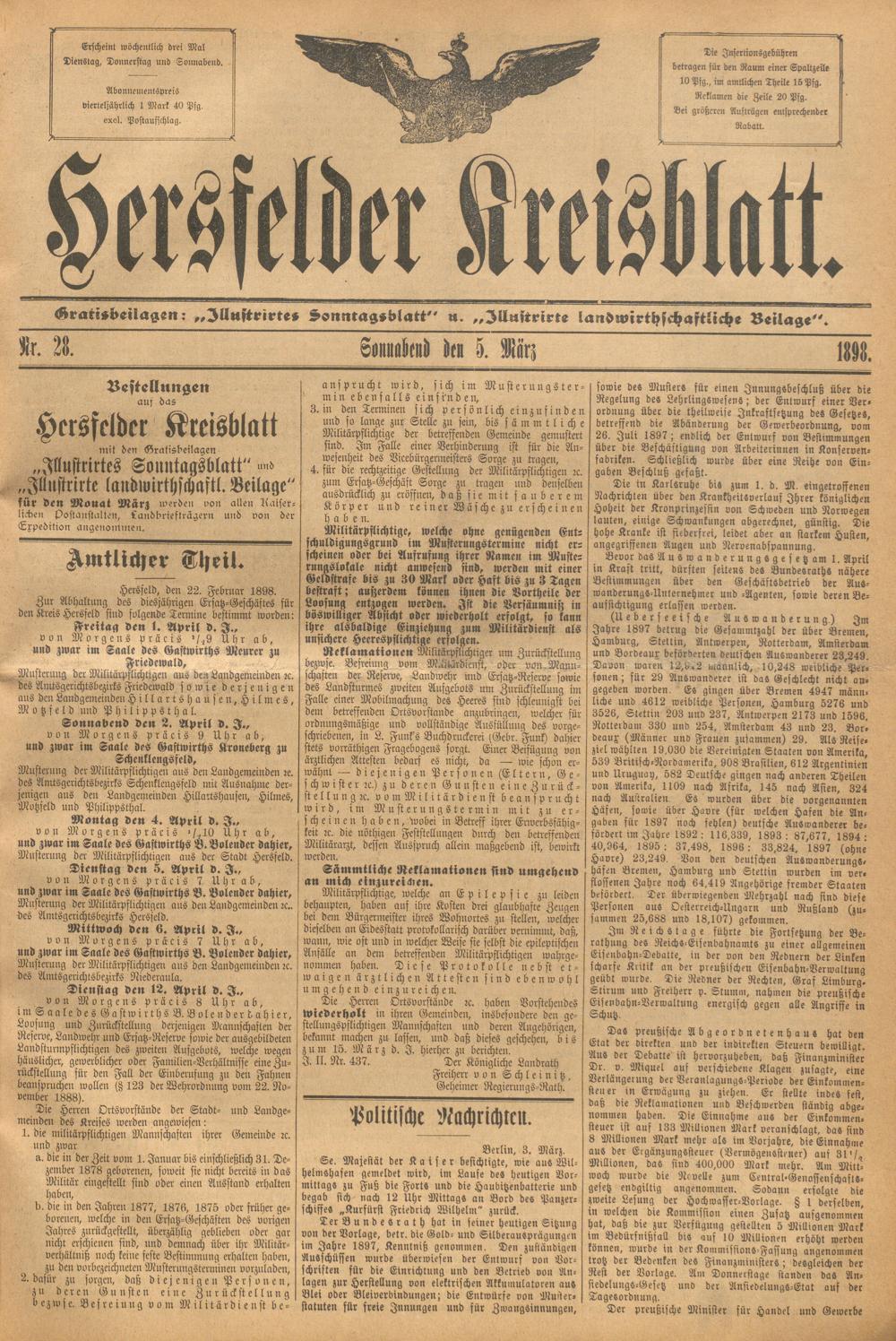 Hersfelder Kreisblatt. 1868-1913