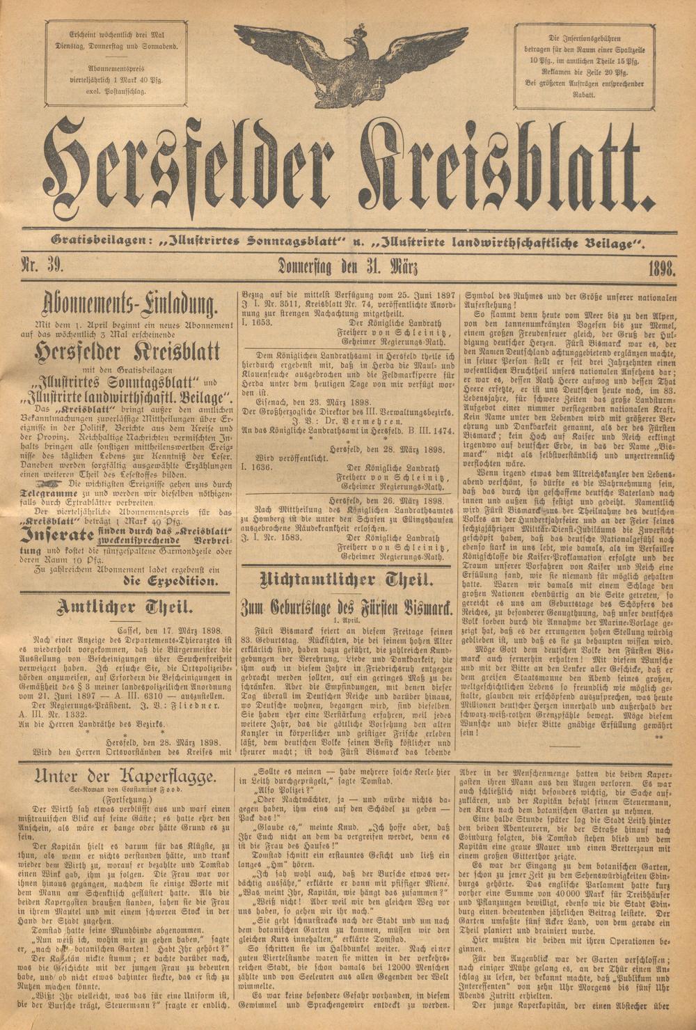 Hersfelder Kreisblatt. 1868-1913