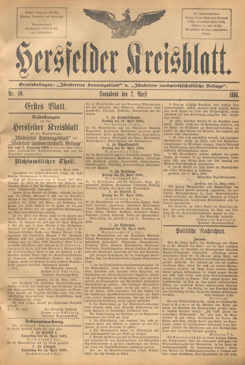 Hersfelder Kreisblatt. 1868-1913